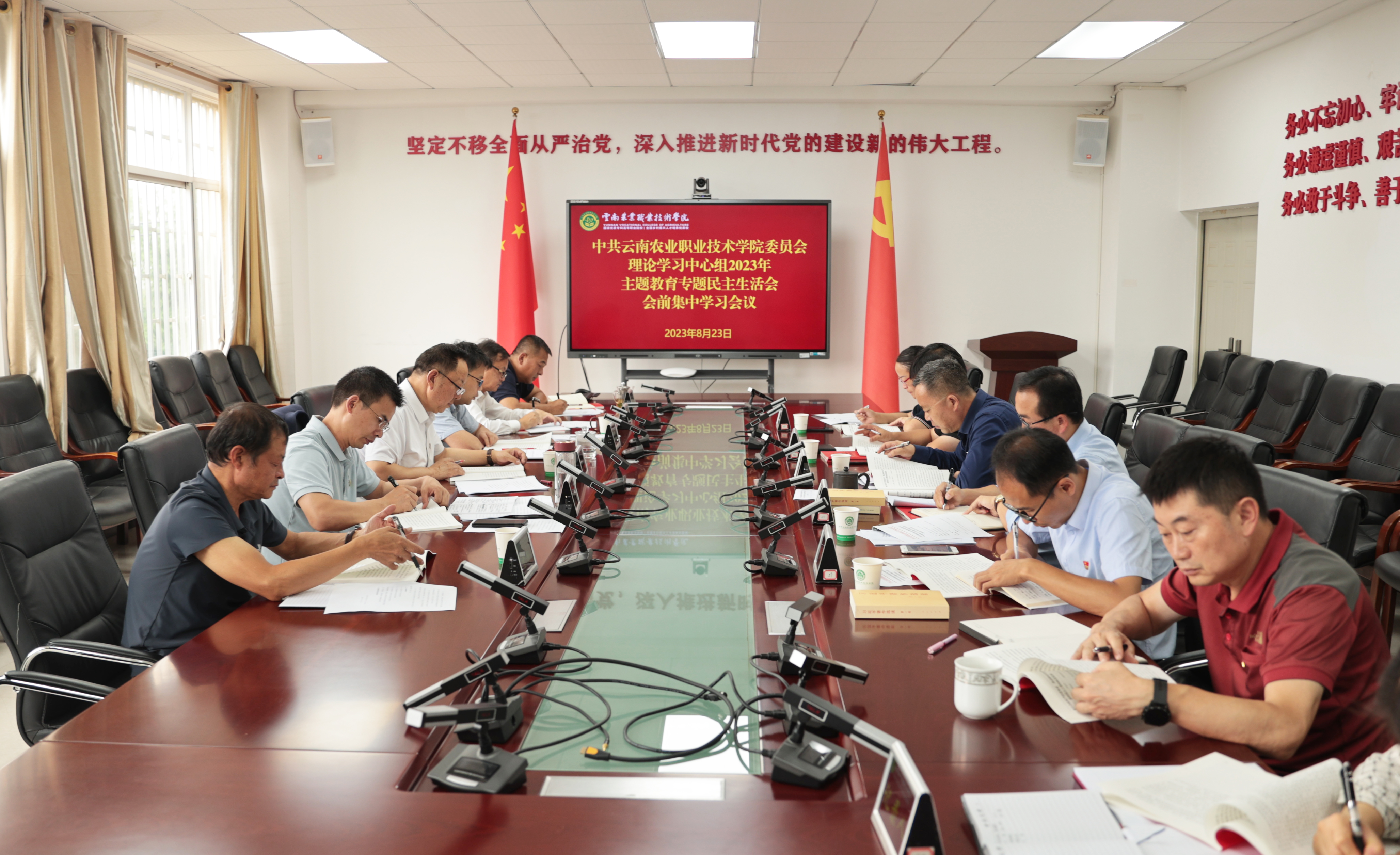 通知中心8月23日,学院举行党委理论学习中心组学习贯彻习近平新时代中国特色社会主义思想主题教育专题民主生活会会前集中学习。会议由党委书记文俊主持,党委班子全体成员参加学习,学院办公室(党委巡察办)、纪检处、宣传部、统战部主要负责人列席会议。