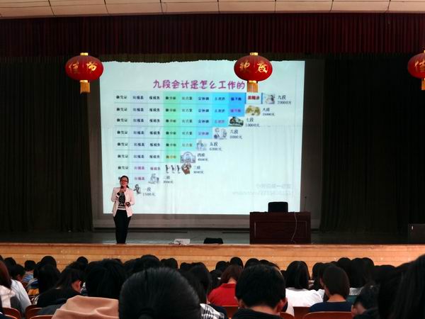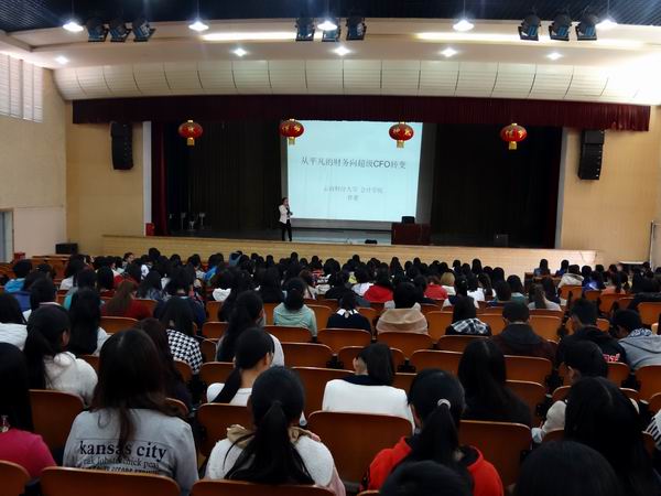 2014年11月21日下午,经济管理学院财务管理专业教研室特邀云南财经大学会计学院学生管理科科长、国家一级人力资源管理师、全球职业规划师、KAB讲师、职业咨询师曾蕾老师,在茭菱校区礼堂,为师生做了一场题为“由普通会计向超级CFO迈进”的专题讲座。