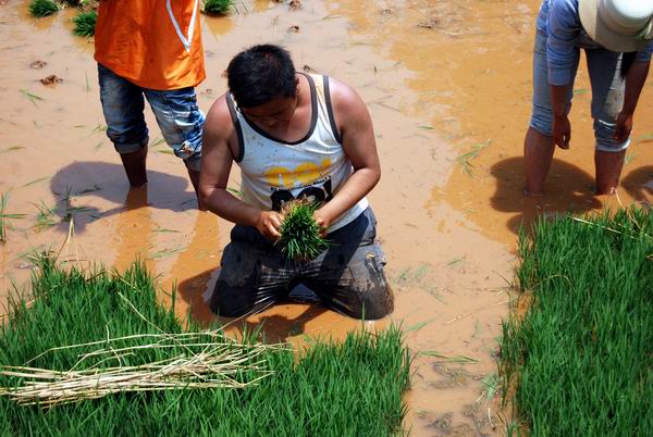 虽然任务重,要求高,但为了按质按量完成好插秧任务,不论是13级种子生产班、13级作物生产班的同学,还是13农业水利技术班的同学,都能相互协作和坚持不懈。