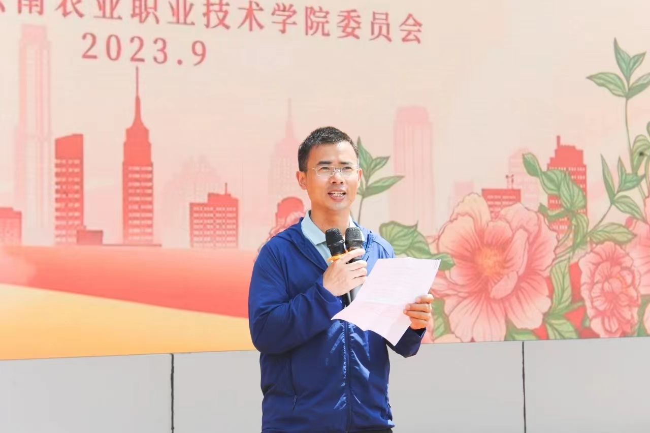 党委副书记伍学龙为活动致辞。他诚挚地向学院全体教师表示衷心的感谢和节日的祝福。呼吁大家携手共进,为教育事业再创新的辉煌!希望活动中各位教职工发扬顽强拼搏的精神争取好成绩,同时预祝本次活动取得圆满成功。