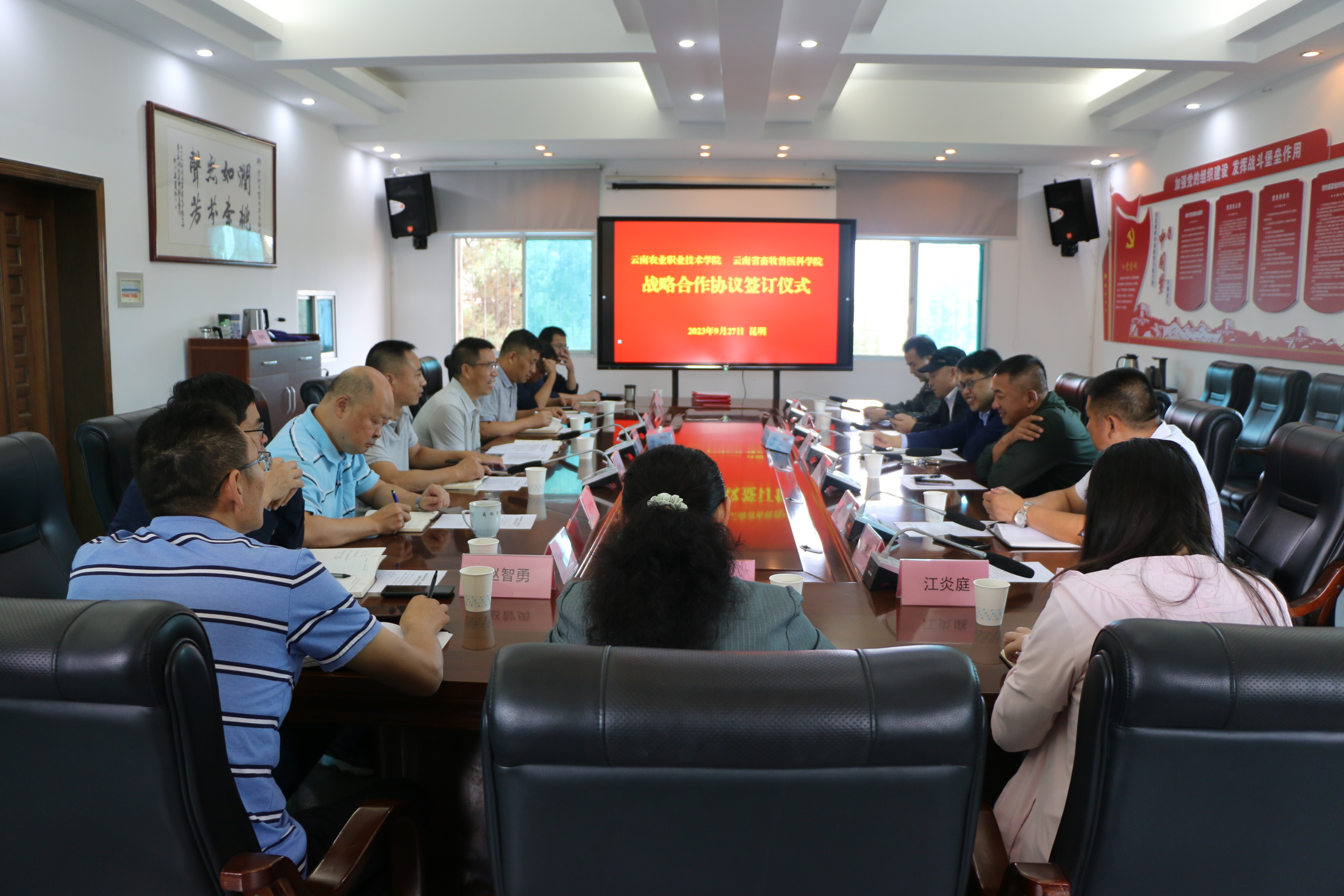 通知中心为全面贯彻落实党的二十大精神,深入学习贯彻习近平总书记考察云南重要讲话和重要指示批示精神,加快我省实施创新驱动发展和乡村振兴战略,充分发挥高等院校和农业科研机构的学科、人才和技术优势,推动农科教、产学研紧密结合,努力实现我省农业科技创新和成果转化进入国家先进行列的目标,9月27日,陈太安院长带领苏华伟副院长、办公室、实践教学中心、畜牧兽医学院、《云南农业》编辑部等相关人员一行6人到云南省畜牧兽医科学院洽谈合作事宜。云南省畜牧兽医科学院金显栋院长和陈太安院长分别介绍了两个单位的基本情况,并对下一步的合作提出了一些意见建议,与会人员作了交流发言。在双方经友好协商的基础上,我院与云南省畜牧兽医科学院签订了战略合作框架协议,主要在项目合作、共建科技平台、深化人才培养、促进成果转化等方面开展合作,共同建立了全面长期战略合作关系。