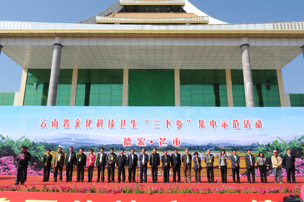 活动当天,芒市艳阳高照,群众热情澎湃。在芒市广场,上百支服务队不断为当地各族群众提供各项服务。我院的服务点前,人头攒动,人声鼎沸。赵副院长带领大家把农民急需的农业科技书籍有序地发到百姓手中,并现场解答了他们提出的相关问题;宣传部蔡永生老师为当地群众书写春联,送出一副又一副。前来接受服务的群众络绎不绝,服务队也不辞辛劳地为大家解疑答惑,赠书送春联。一天下来,虽然有些辛苦,但看到当地群众领到东西后快乐的表情,大家都感到由衷的高兴。