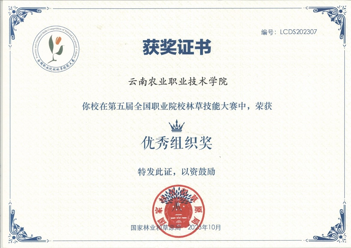 经过激烈角逐,由sunbet官网农学与园艺技术学院李霏飞、潘悦两位教师指导的风景园林设计专业学生耿黎、刘苑荣获“园林景观设计”赛项一等奖;姜开梅、姚茹瑜两位教师指导的园林技术专业学生何清清荣获“林草病虫害识别与防治技术”赛项二等奖。同时,指导教师李霏飞、潘悦获“优秀指导教师奖”;sunbet官网荣获“优秀组织奖”表彰。