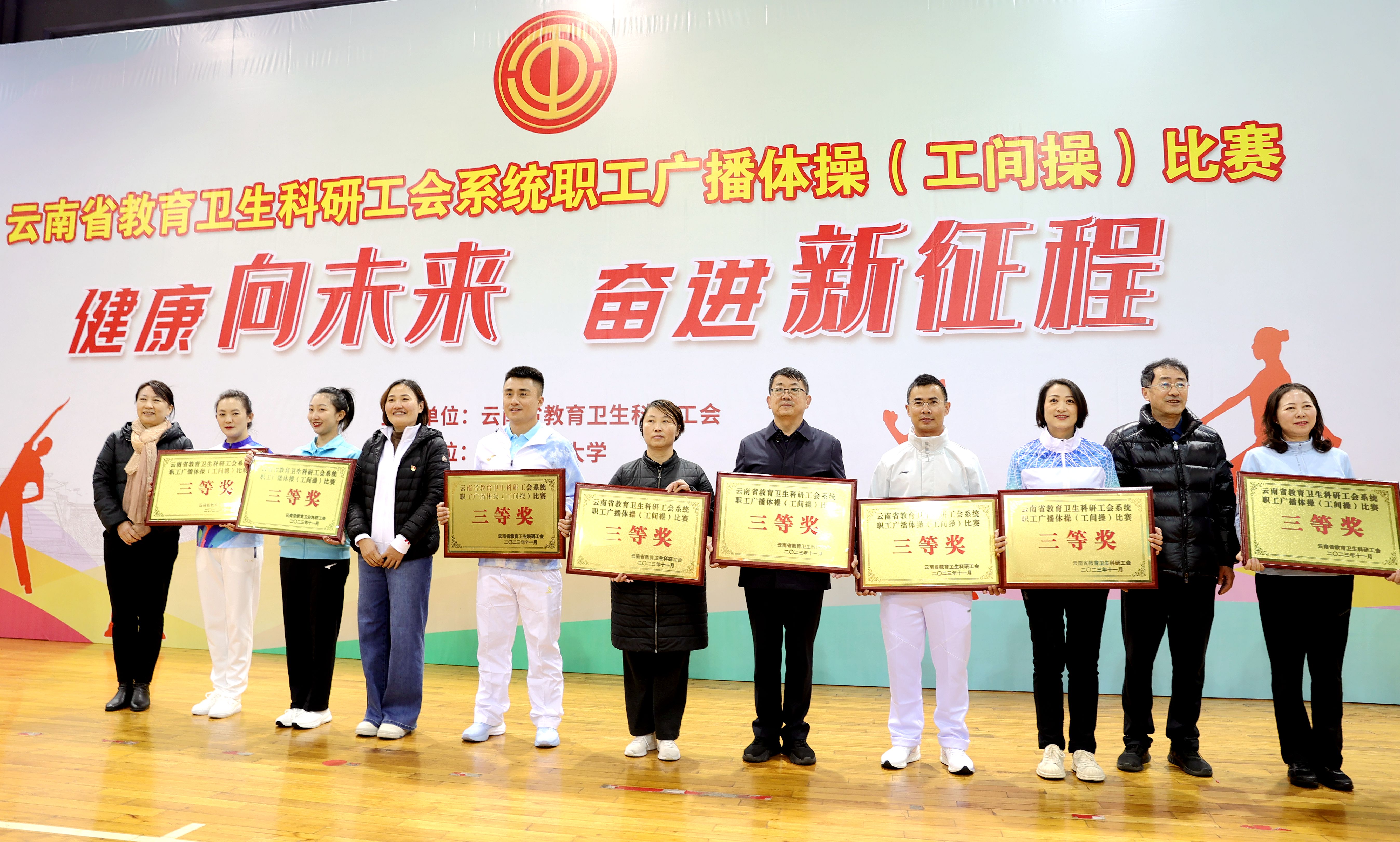 通知中心11月18日,我院党委副书记、工会主席伍学龙带队参加了云南省教育卫生科研工会系统广播体操(工间操)比赛。经过激烈的角逐,我院代表队在34支参赛队伍中脱颖而出,荣获了三等奖。