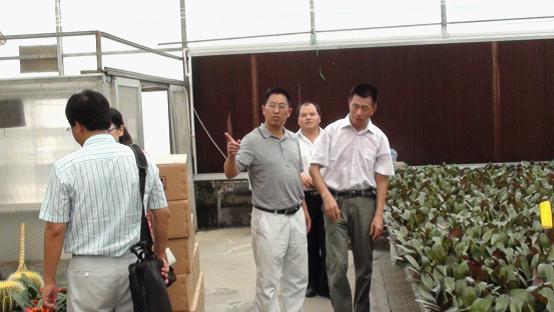 党委书记崔金赋同志仔细了解花卉工程化生产情况