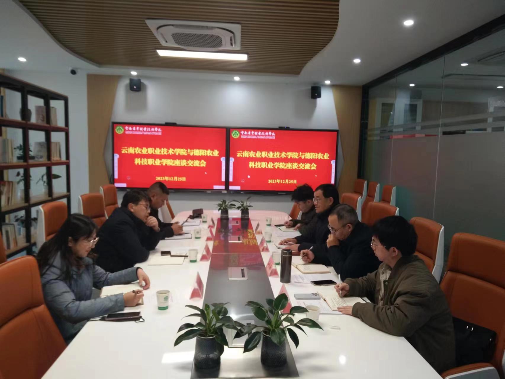 通知中心12月25日,四川德阳农业科技职业学院执行院长夏洪波一行到我院考察交流。学院党委副书记、院长陈太安及办公室、实践教学中心、农学与园艺技术学院相关人员参加座谈。