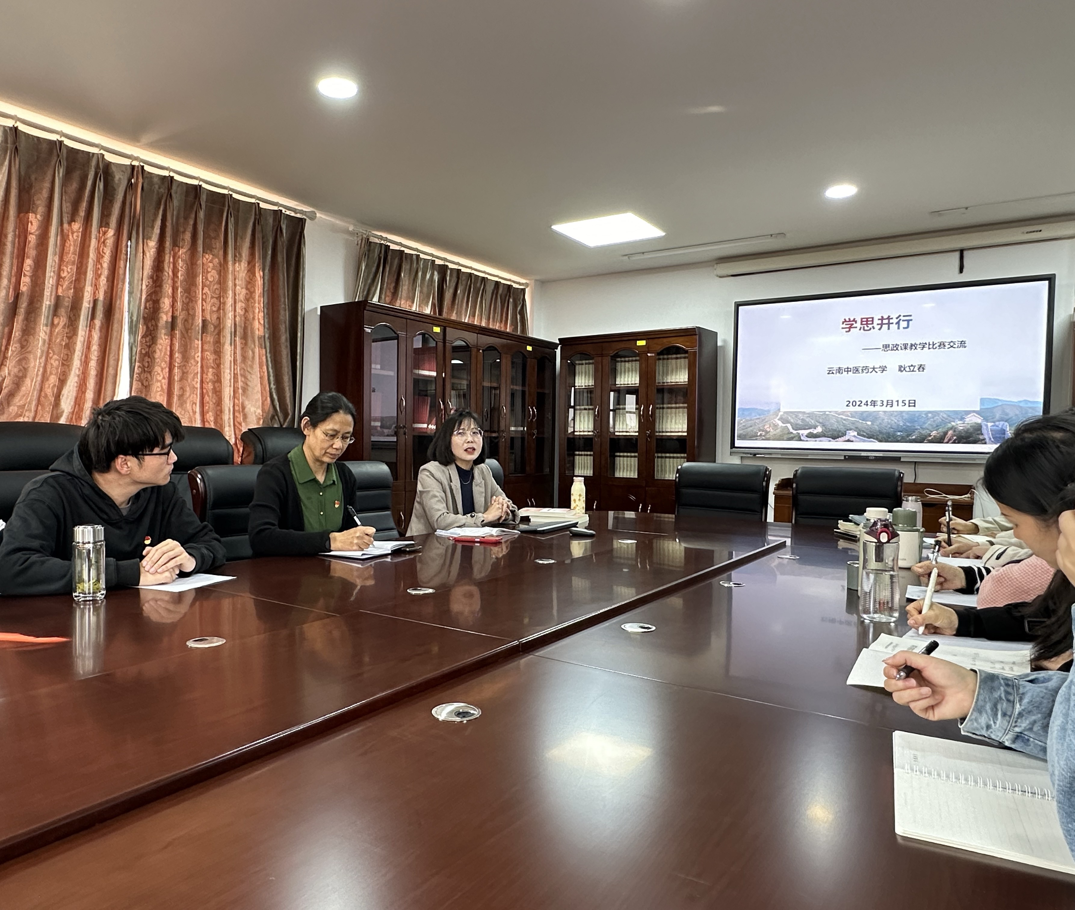 本次赛前指导专家为云南中医药大学副教授耿立春,耿立春老师是2023年教育部思政课教师教学能力展示比赛《习近平新时代中国特色社会主义思想概论》课全国二等奖获得者。指导会上,耿立春老师围绕参赛历程、比赛案例解析、比赛选点、教学过程、教学方法及自己的感悟与青年教师进行了交流,并对参赛选手的教学展示进行了一对一的指导,与会教师纷纷表示获益良多,对即将举行的云南省高校思想政治理论课教学比赛充满信心,更多地是想通过参加比赛来对每一个教学点进行认真打磨,不断锻炼和提升自己,为讲透讲深讲活思想政治理论课夯实基础。