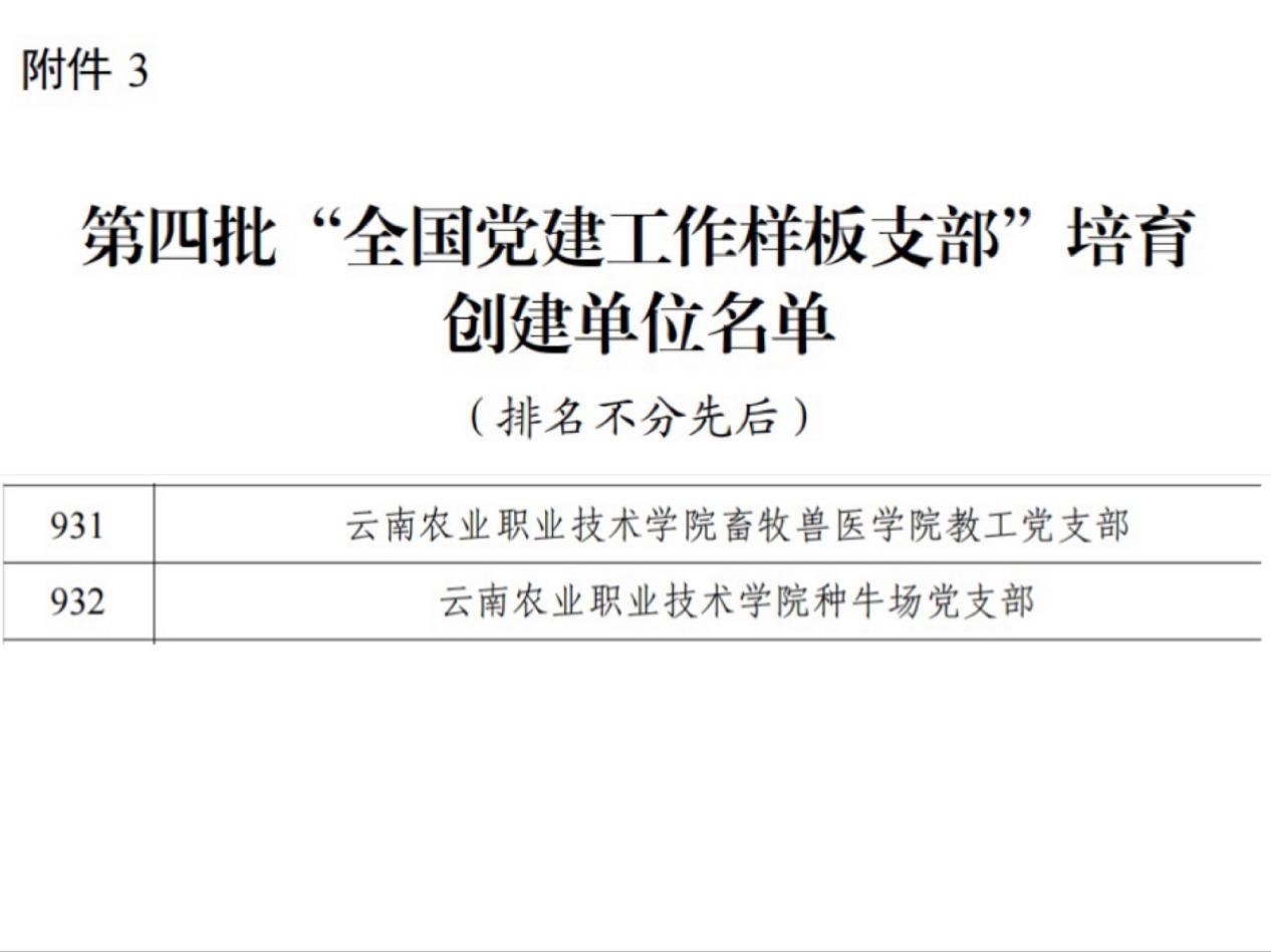 通知中心近日,教育部公布第四批新时代高校党建示范创建和质量创优工作遴选结果,sunbet官网畜牧兽医学院教工党支部、种牛场党支部入选“全国党建工作样板支部”培育创建单位,实现党建工作新突破。
