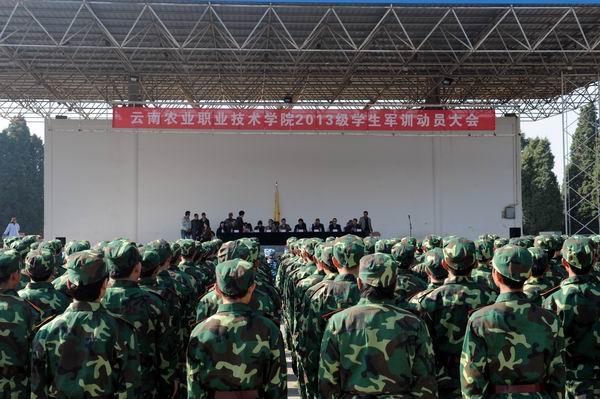 sunbet集团中国官网入口党委书记崔金赋同志、院长李永忠同志、党委副书记赵刚同志、副院长何明东同志、副院长俞浩同志,昆明民族干部学院冯春大队长、熊云海副大队长出席动员会。我院有关部门负责人、各系党总支书记、带队教师、教官,及2013级2200余名军训学生参加了军训动员大会。大会由昆明民族干部学院一大队副队长熊云海主持。