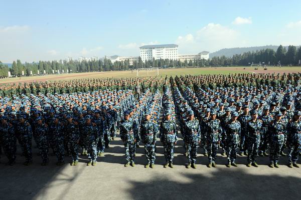 在雄壮的国歌声中,大会拉开了帷幕。2200余名身着戎装的新生以崭新的姿态迎接军营生活的洗礼和考验。