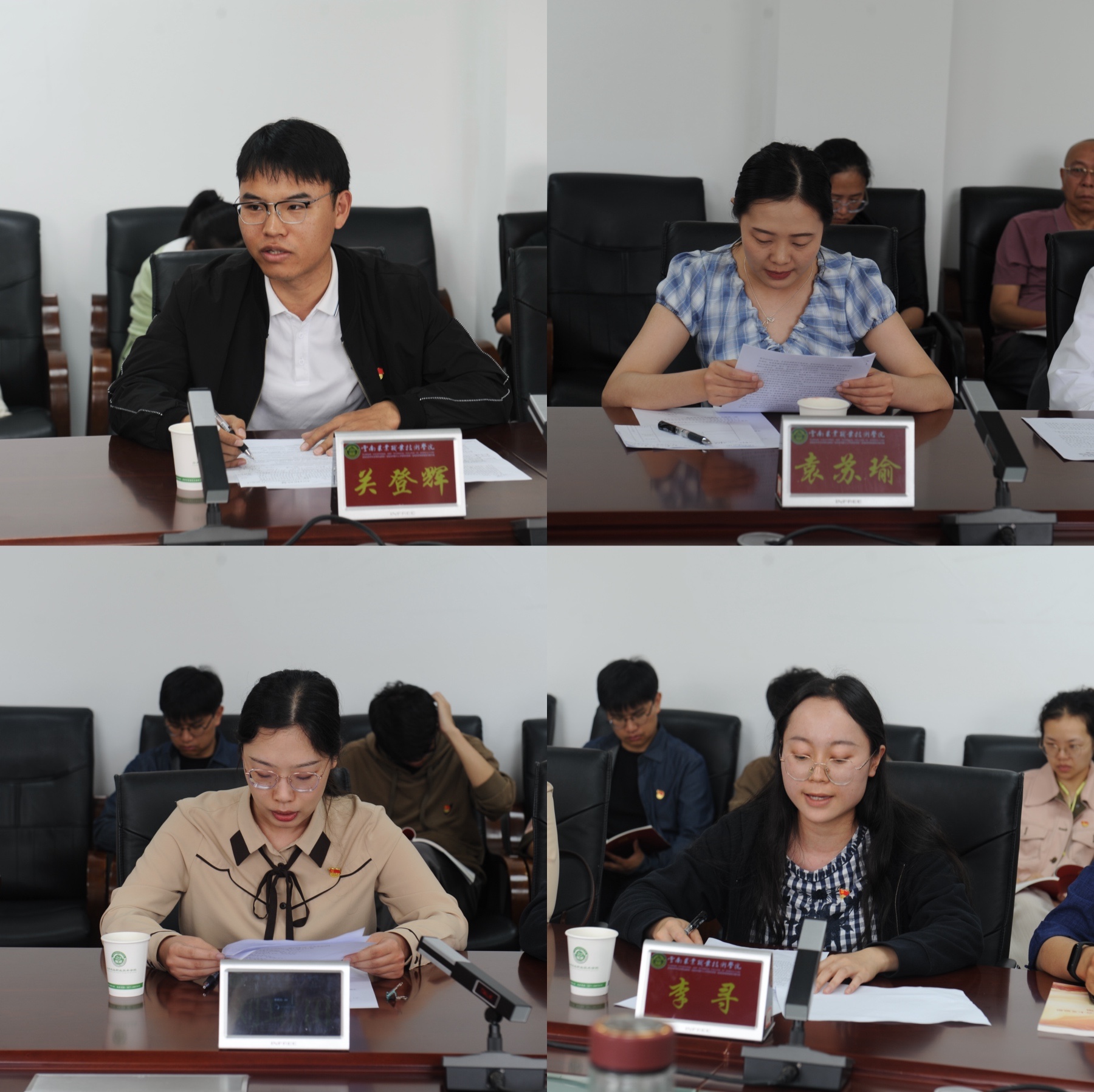 学院党委书记文俊传达学习习近平总书记对学校思政课建设的重要指示及新时代学校思政课建设推进会精神、习近平总书记近期重要讲话指示精神,党委副书记伍学龙传达学习《中国共产主义青年团普通高等学校基层组织工作条例》,纪委书记冯志宏领学党纪学习教育相关内容,与会人员围绕学习贯彻习近平总书记对学校思政课建设重要指示精神作交流研讨。