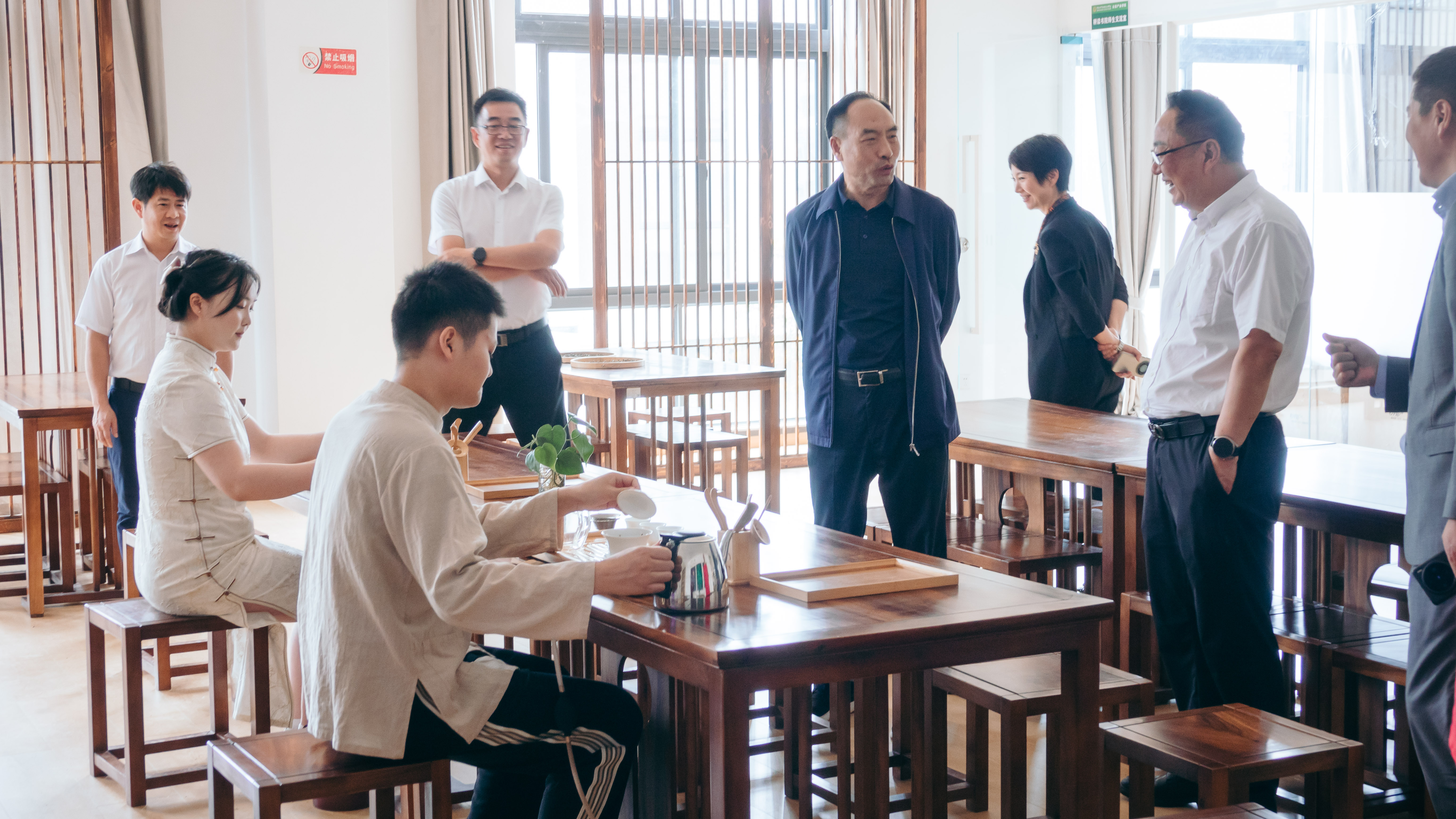 调研组一行实地察看了安宁校区图书馆、学生书香雅韵系列课程作品展、民俗茶艺实训区、企业教室、烹饪实训中心和云安·农林天下园区园林工程实训作业区、林木家具代表性商户等,并和烹饪工艺与营养、酒店管理与数字化运营专业的部分学生和园区商户经营者亲切交流。文俊书记介绍了学校的发展情况以及联合知名企业、汇聚社会资源创新探索公办职业院校产业学院建设的主要做法和阶段性成果,汇报了学校下一阶段的发展规划。