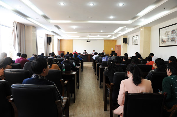 2015年3月13日下午14:30在茭菱校区三楼会议室召开党委中心组学习会议。学校党政领导、副科以上干部参加会议,会议由何明东副院长主持。