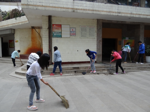 活动开始前,系学生会主席团、各部门部长以及各社团成员、各班代表拿着各自的工具齐聚于学院教学楼前。系学生会主席团首先对本次活动做了安排,把整个校园划分为教学楼、宿舍、篮球场等几个板块。大家在各自负责人的带领下,热情高涨、认真细致地开始清洁卫生大扫除,每一片瓜果纸屑、每一个水沟角落都不放过。经过大家一中午的努力,校园环境焕然一新,不少路过的老师、同学纷纷发出了赞扬之声。