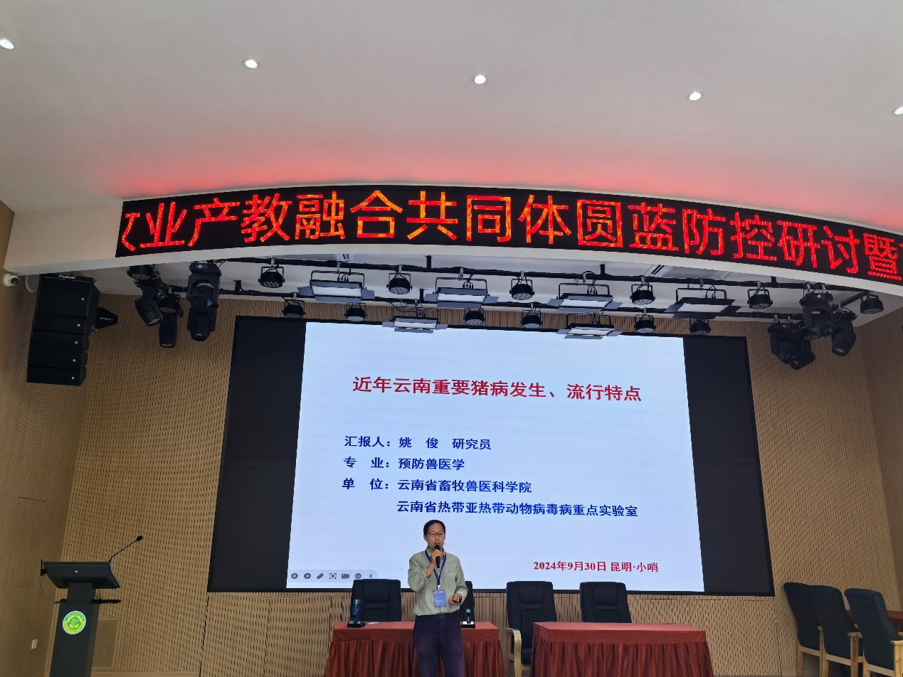 最后,云南省畜牧兽医科学院姚俊研究员,云南神农农业产业集团股份有限公司健康管理中心总监李明博士,国药集团动物保健股份有限公司市场总监、猪苗技术服务总监徐敏博士,山东信达基因科技有限公司副总经理王方山博士等,分别就《近年云南重要猪病发生、流行特点》、《工业化健康管理体系的建立》、《猪圆环病毒病的防控实践》、《猪场蓝耳病流行新特点及防控措施》等课题进行讲授,对深化畜牧业产教融合进行了深入探讨。