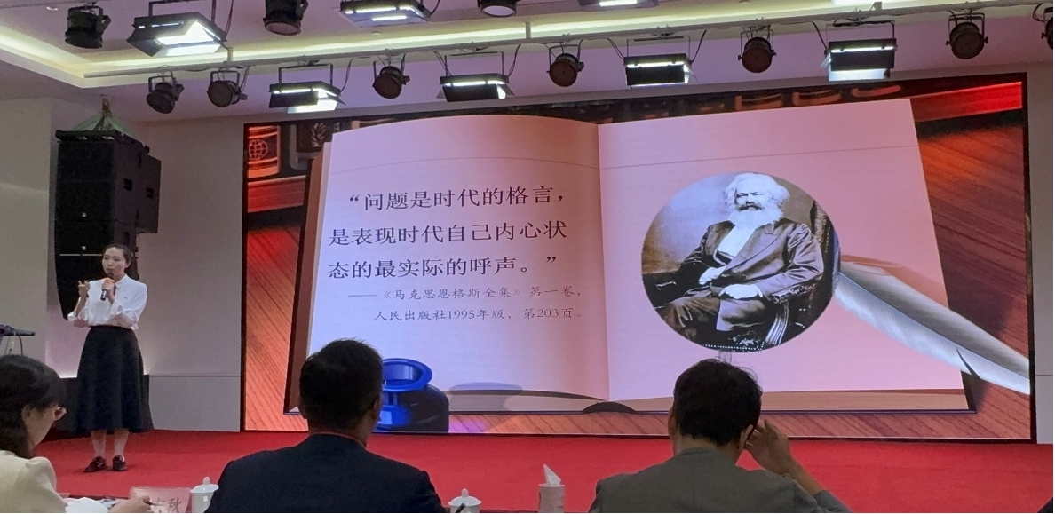 在比赛中,龙臻老师围绕《毛泽东思想和中国特色社会主义理论体系概论》教材第六章第一节第一目《邓小平理论首要的基本的理论问题》展开了深入浅出的讲授,以马克思主义理论经典著作导入,思路清晰,逻辑严谨,教学安排张弛有度。