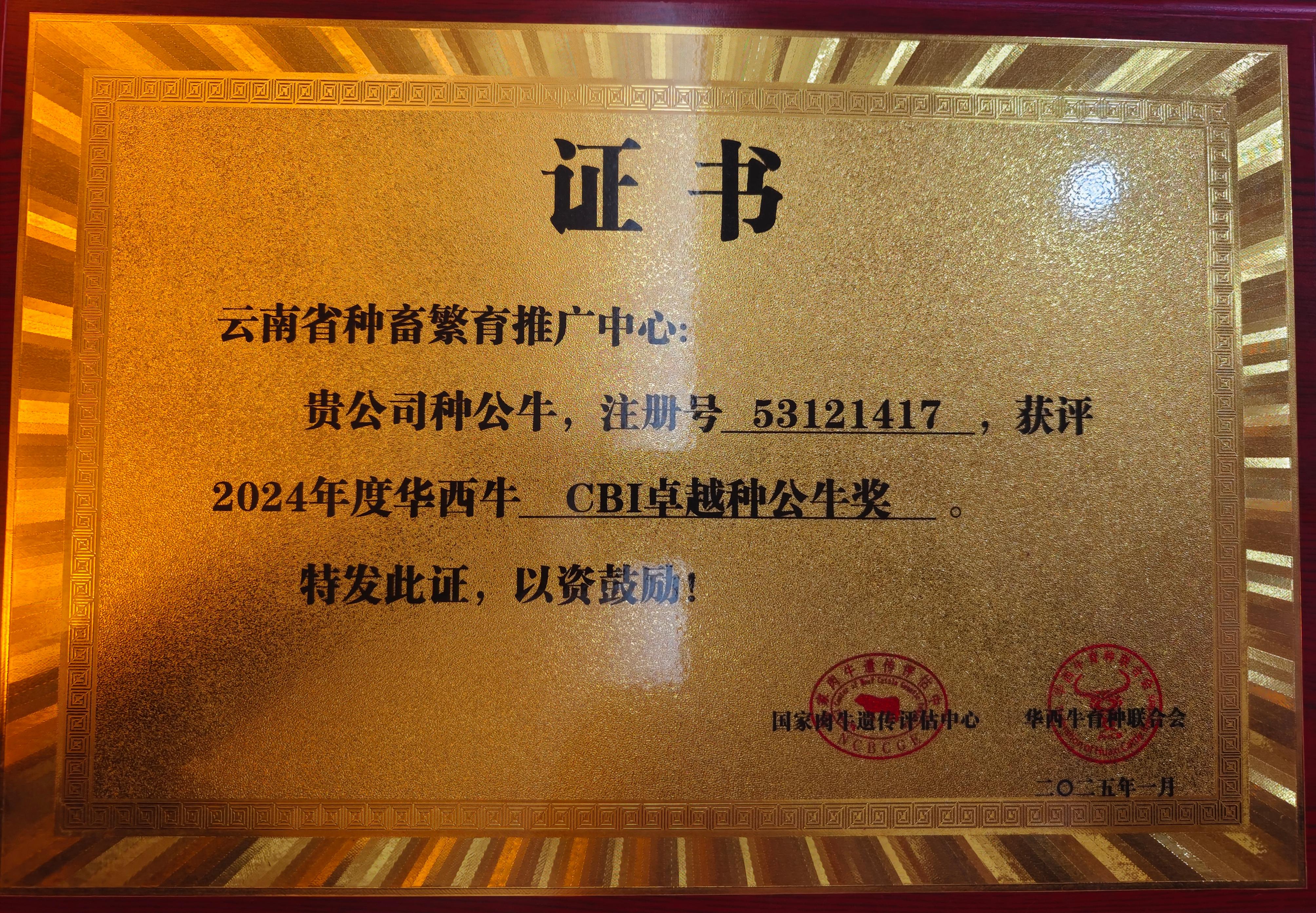 此次会议还邀请了专家开展华西牛系谱证书登记流程培训,进行国外牛育种组织成功案例分享,举行了2024年华西牛优秀种公牛和种母牛颁奖仪式,分别对华西牛种公牛CBI、GCBI和华西牛母牛CBI排名全国前10的30头牛所在单位颁发了奖牌。会上,sunbet官网种牛场自主培育的注册号为53121417的种公牛获评2024年度华西牛CBI卓越种公牛奖。