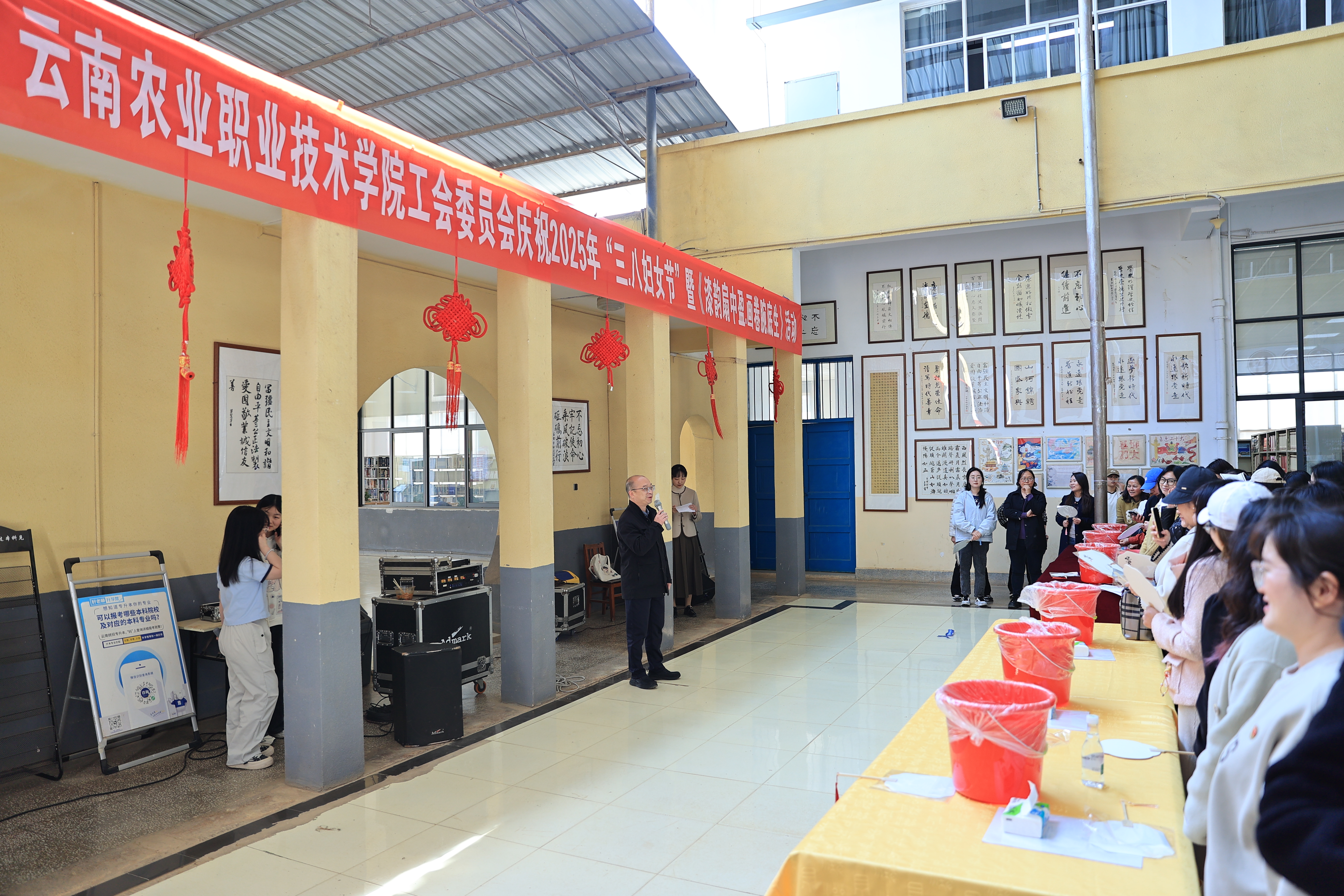 活动开始,学校党委副书记杨波致辞,向全体女教职工送上美好祝福,并指出漆扇作为东汉时期起源的传统手工艺瑰宝,承载千年文化底蕴,此次制作活动是对非遗的传承,也是对女性智慧与创造力的致敬。