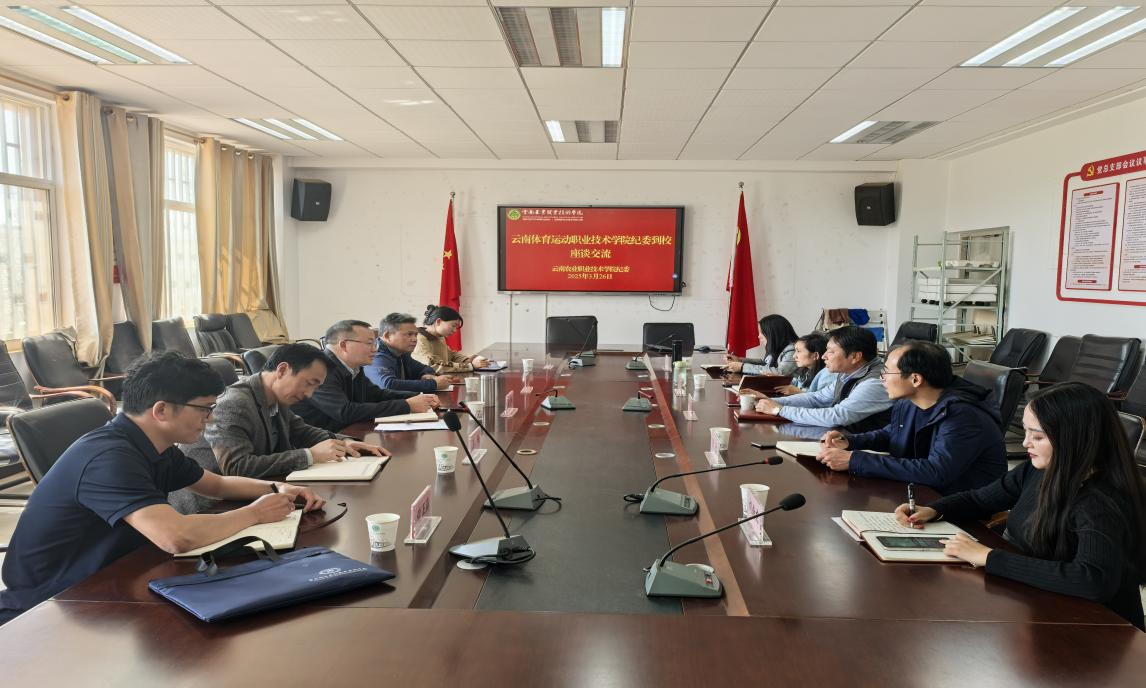 通知中心3月26日下午,云南体育运动职业技术学院纪委书记、监察专员金吉斌一行6人到访sunbet官网,与sunbet官网纪委开展工作交流。sunbet官网纪委书记、监察专员柳勇及纪检监察处全体同志参与了此次座谈。
