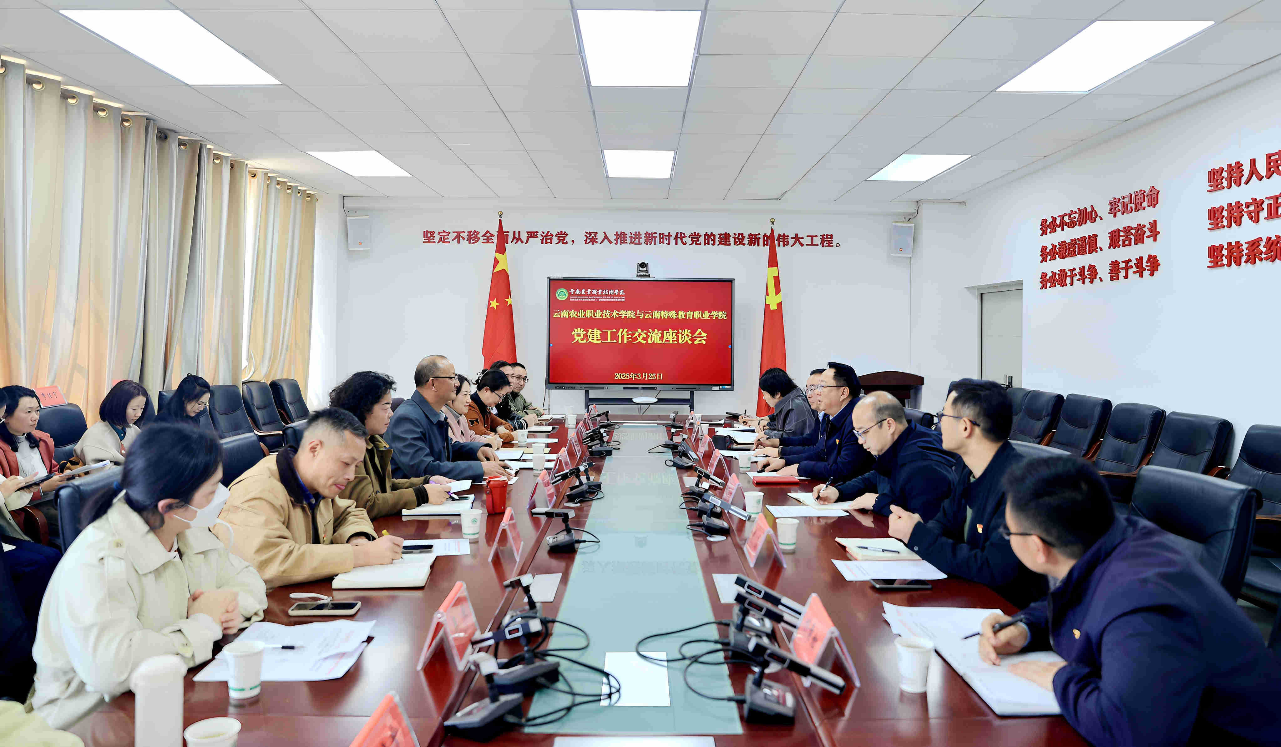 3月25日,云南特殊教育职业学院党委书记孙继先率本校办公室、组织部、校团委等部门同志一行15人到sunbet官网进行考察调研。sunbet官网党委书记文俊、党委副书记杨波及办公室、组织部、农学与园艺技术学院、畜牧兽医学院相关人员参与调研。