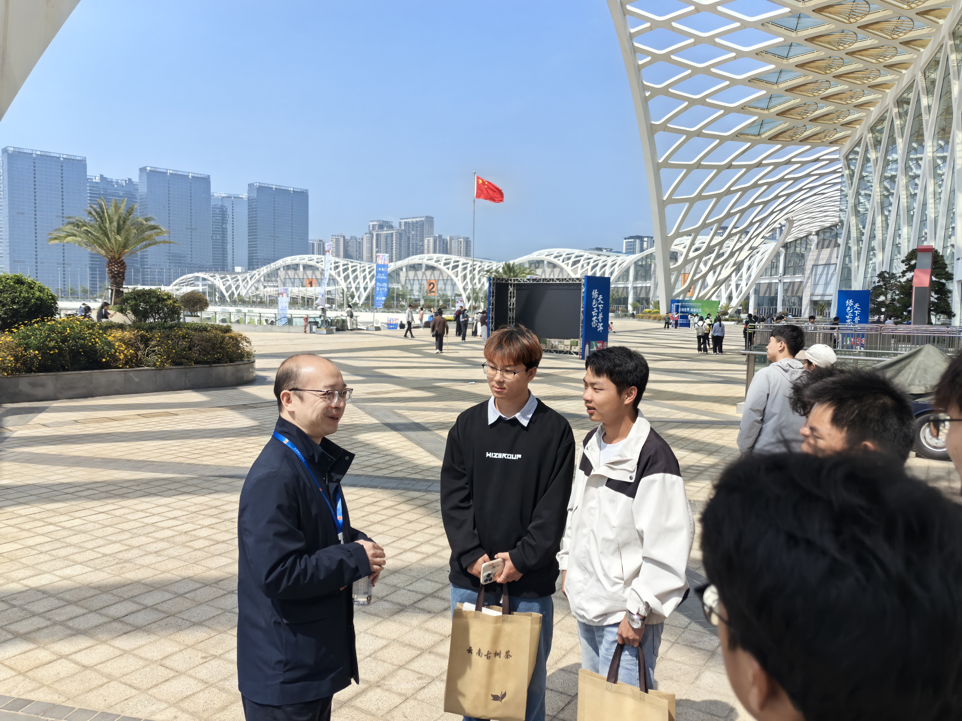 校党委副书记杨波也来到现场与学生交流。在茶文化创新展区,2023级学生王清分享了自己参与本届茶博会Logo设计比赛并入围30强的经历,称云茶博览会让自己从课堂理论走向实践设计,更直观地理解了茶文化的多元表达,提升了专业技能,也对行业需求有了新思考。杨波副书记鼓励同学们以实践为桥梁,将专业知识与产业创新紧密结合,争做乡村振兴的“新茶人” 。