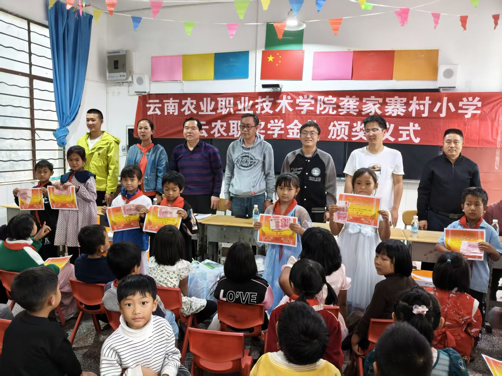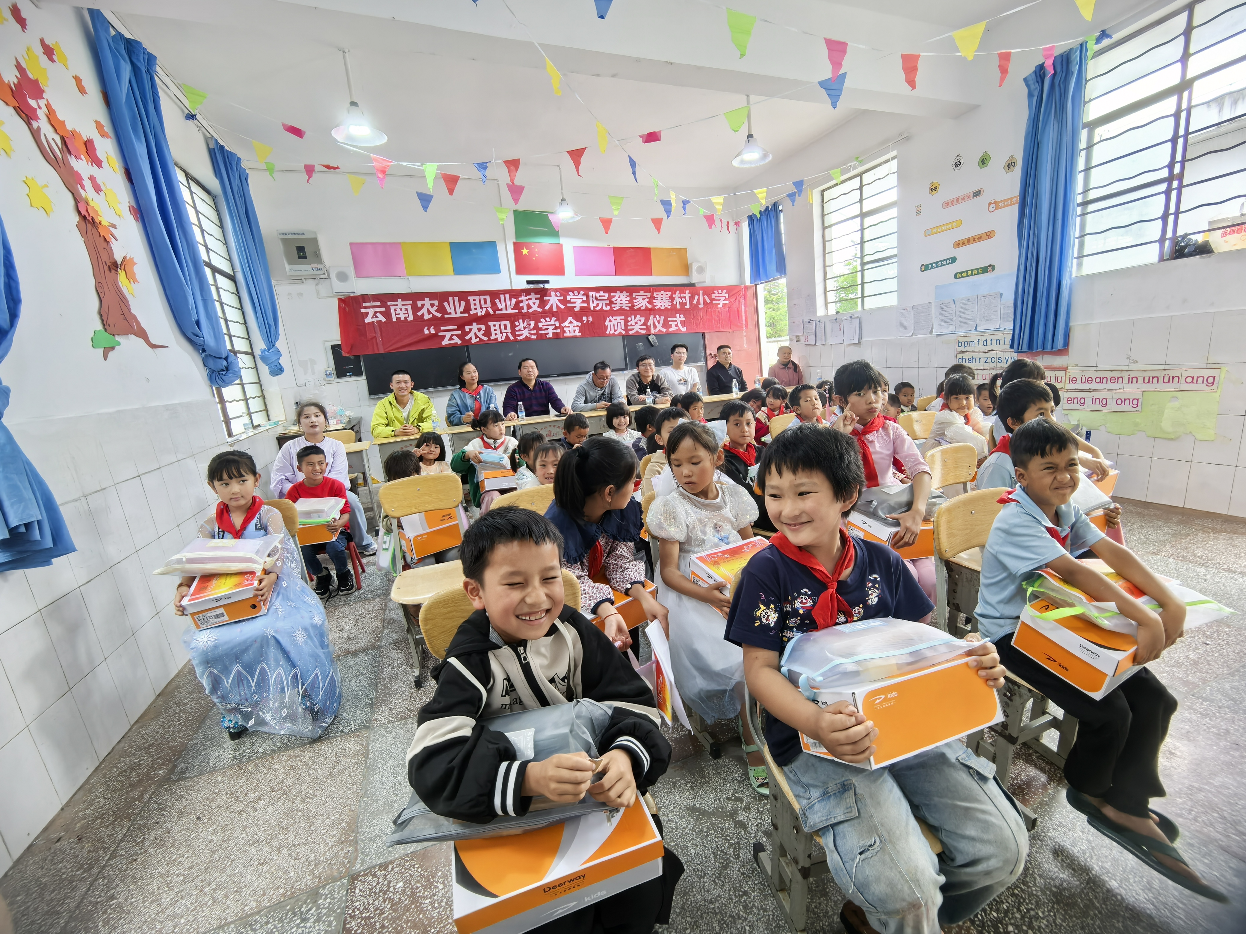 教育帮扶,我们始终在路上。通过持续推进教育帮扶工作,龚家寨村已实现基础教育阶段适龄儿童零辍学;"云农职奖学金"的设立不仅为孩子点燃求学希望,更为乡村振兴储备人才力量,助力培养新时代社会主义建设者和接班人。(学校驻村工作队供稿/图:林登贵、李锐华/文:杨卫国/一审:张敏、二审:唐丽群、三审:杨筱莹/一校:杨卫国、二校:张敏、三校:唐丽群:责任编辑:皇甫苏婧)