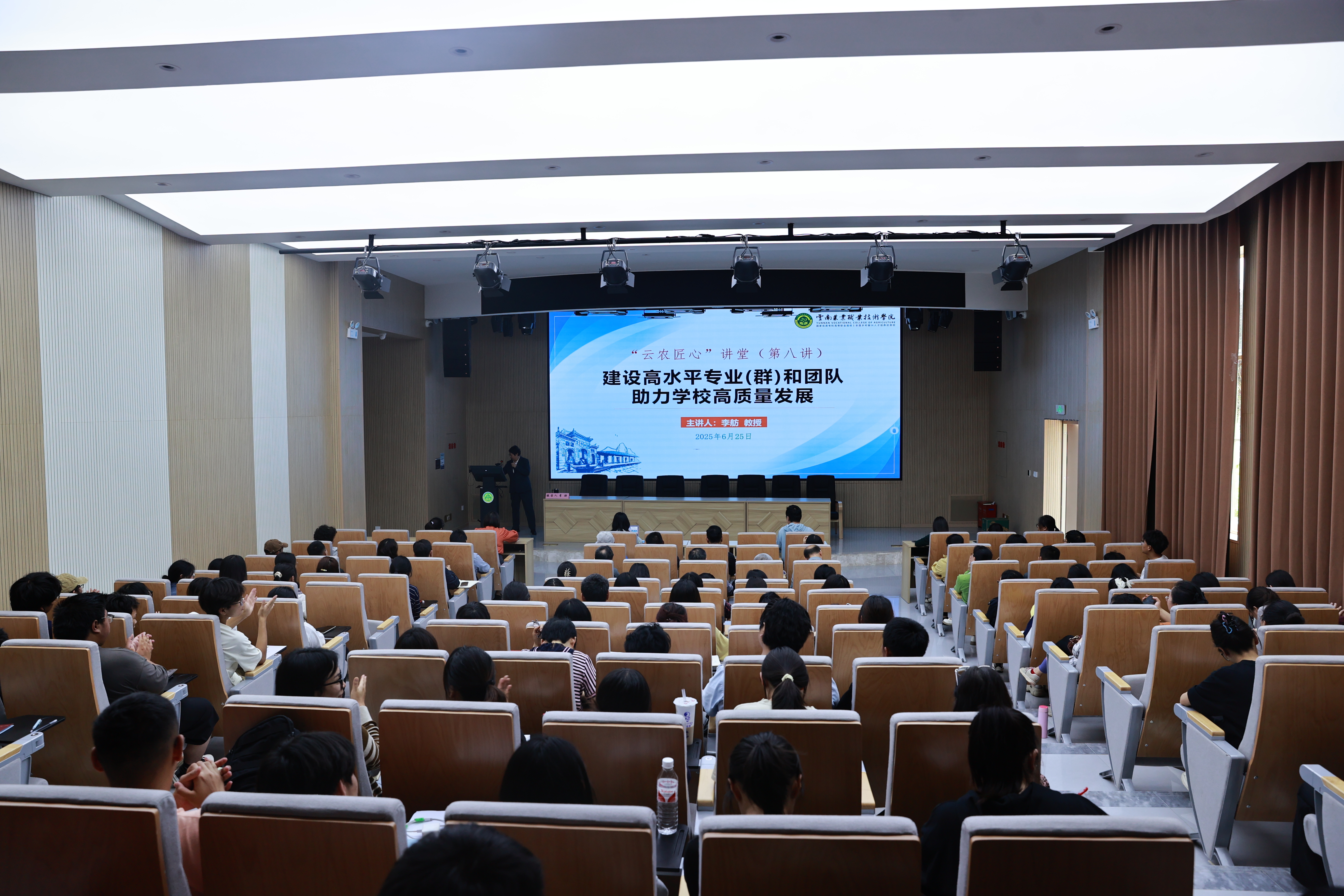 通知中心6月25日下午,学校“云农匠心讲堂”第八期在小哨校区综合楼一楼阶梯教室开讲。全国五一劳动奖章获得者、全国高校教学名师,学校银龄计划教师李舫教授以《建设高水平专业(群)和团队,助力学校高质量发展》为题,带来一场既有理论高度又具实践深度的精彩讲座。本次讲座吸引了众多师生到场聆听。