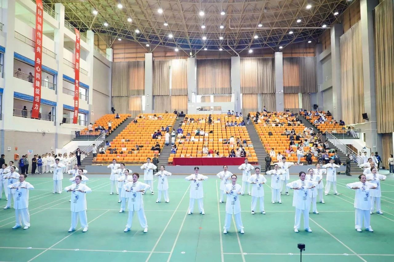比赛现场气氛热烈,sunbet官网代表队作为第12号队伍闪亮登场。队员们身着统一队服,精神饱满,在大家默契的配合下,完整而流畅地演绎了八段锦功法。他们的动作整齐有力,一招一式都充满了韵味,将八段锦“松紧结合”“动静相兼”的特点展现得淋漓尽致,充分体现了传统养生文化的深厚内涵,赢得了现场观众和评委的阵阵掌声。