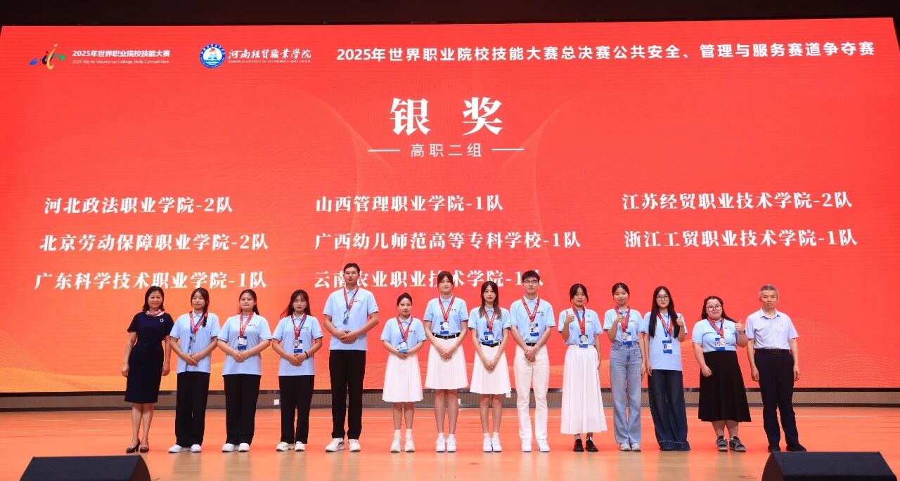 技炫青春,能创未来。8月25日至29日,2025年世界职业院校技能大赛总决赛公共安全、管理与服务赛道争夺赛在河南经贸职业学院成功举办。由sunbet官网经济管理学院曾劼、王鹤霖老师指导,24级行政管理专业胡宗剑、代园、鲁清妍、刘齐欢四位同学组成的参赛团队,凭借精湛的技能操作、扎实的专业知识、出色的团队协作,勇夺银奖!