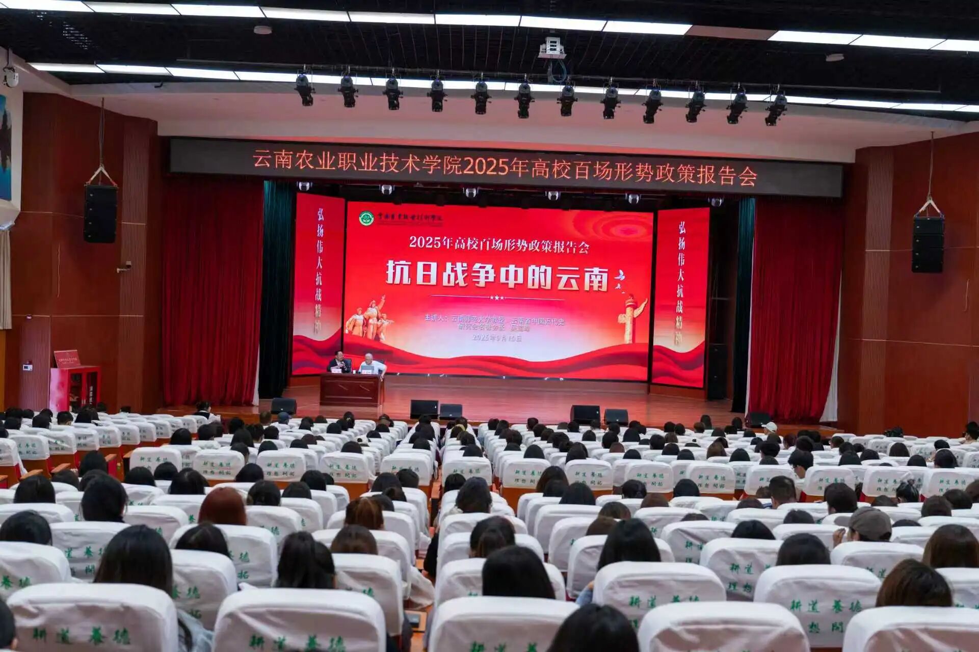 通知中心为进一步深入学习习近平总书记在纪念中国人民抗日战争暨世界反法西斯战争胜利八十周年大会上的重要讲话精神、学习贯彻习近平总书记关于中国人民抗日战争暨世界反法西斯战争的重要论述,9月10日,sunbet官网在小哨校区蚕桑礼堂召开2025年高校百场形势政策报告会暨《抗日战争中的云南》大思政课专题讲座。本次讲座特别邀请云南师范大学教授,云南省中国近代史研究会名誉会长吴宝璋担任主讲,带领师生重温抗战岁月中云南军民的英勇事迹与卓越贡献。会议由学校党委书记文俊主持。