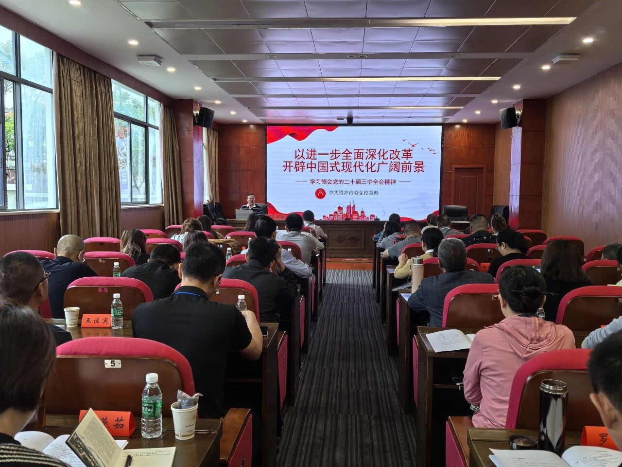 在腾冲市委党校开展的专题教学中,学员们集中学习了《党的二十届三中全会精神解读》《深入学习贯彻习近平总书记关于党的建设的重要思想》《党务基础知识培训》《习近平新时代中国特色社会主义思想的世界观和方法论》《深入贯彻落实中央八项规定精神学习教育》《建设具有强大凝聚力和引领力的社会主义意识形态》等课程,观看视频《杨善洲》,进一步强化了理论功底,精进了业务能力,补足精神之“钙”,锻造实干之“能”。