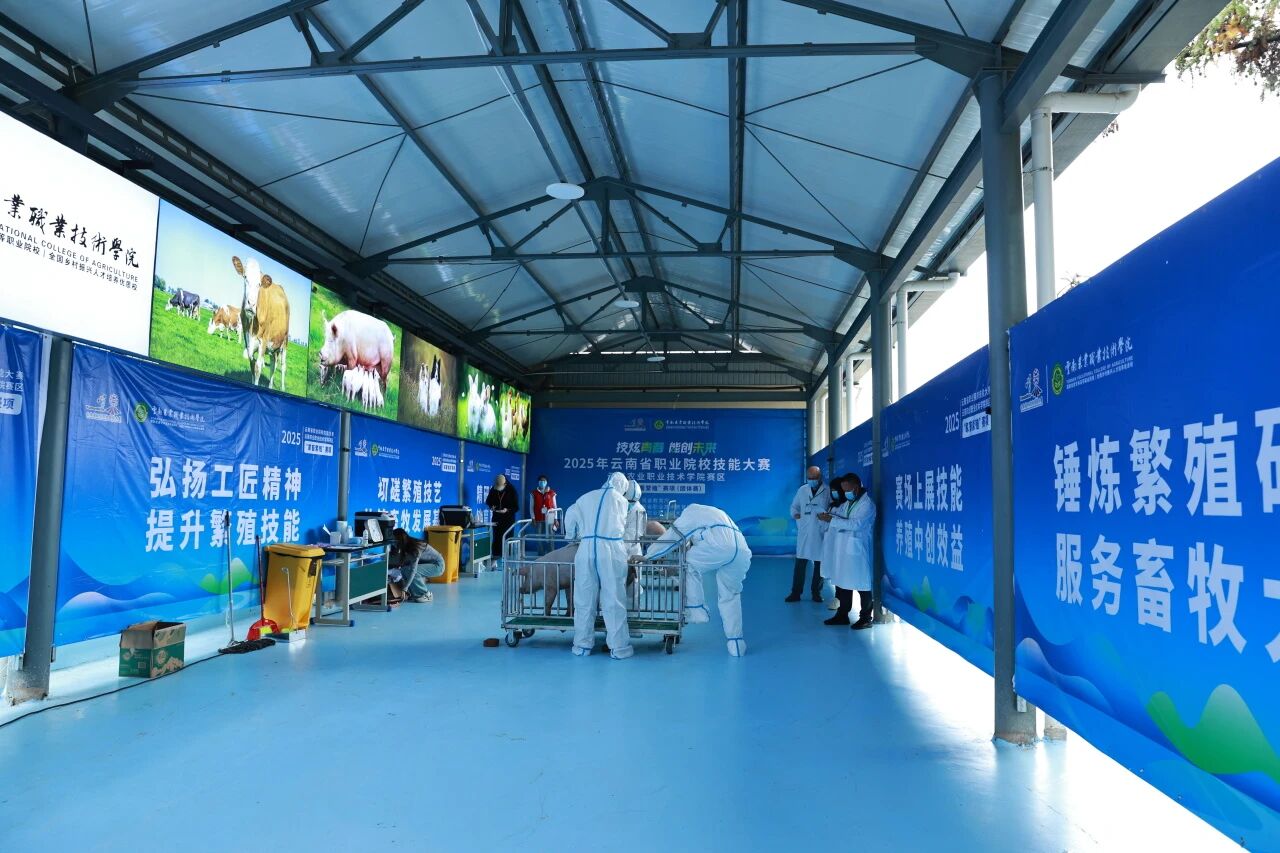“家畜繁殖”赛项采用“理论+技能”双考核模式,技能模块涵盖牛细管冻精检测(活力、密度、畸形率)、猪发情鉴定、猪常规人工授精3项关键技术。赛事不仅为学生搭建了技能比拼平台,更深化了产教融合,为农业企业储备优质技术人才,助力行业技术创新落地。