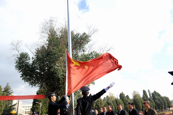 紧接着,升旗仪式开始,在雄壮嘹亮的国歌声中,全体师生庄严肃立,向国旗行礼。