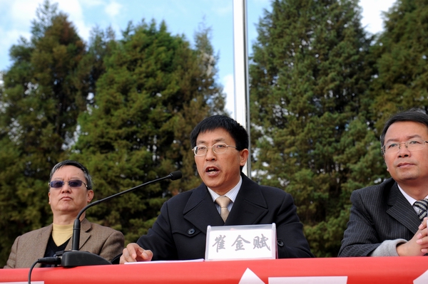 随后,运动员代表,裁判员代表在主席台上庄严宣誓。崔金赋书记高声宣布:“第十一届田径运动会暨冬季趣味运动会开幕!”