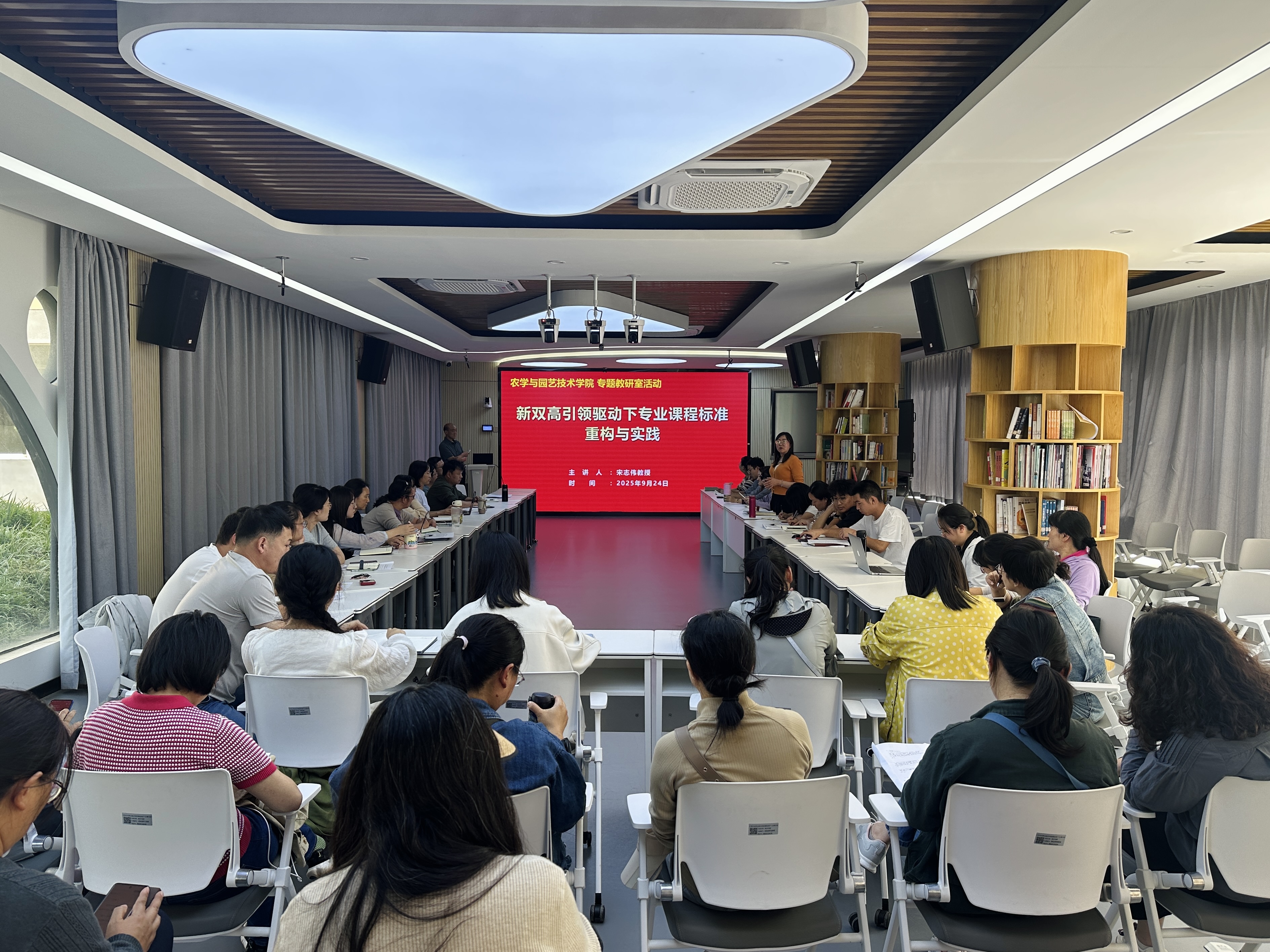 围绕教育部2025年版职业教育(高职专科)专业教学标准,宋教授结合第二期省级“双高计划”现代农业技术专业群建设要求,深入剖析当前学院专业人才培养方案存在的短板,针对性提出修订思路:一是建立校行企协同共制机制,凝聚育人合力;二是创新专业人才培养模式,契合产业发展需求;三是重构凸显特色的课程体系与实践教学体系,强化实践育人;四是开设田间课堂与云农特色产教融合课程,实现教学与生产场景无缝衔接。在重构后凸显产教融合特色的课程标准的制定方面,宋教授强调要对接云南高原特色现代农业对高技能人才的新需求,对接龙头企业核心岗位,精准定位人才培养目标规格,培养“三型”人才;系统梳理头部企业典型生产岗位核心能力,绘制“能力图谱”,将企业生产技术标准、典型生产岗位操作规程纳入课程内容,升级课程标准。并以《植物生长与环境》课程对接云南云秀花卉有限公司等三家企业设施作物水肥一体化技术等产业高端升级课程标准为例,提出校企合作共同编制专业核心课程标准的路径。