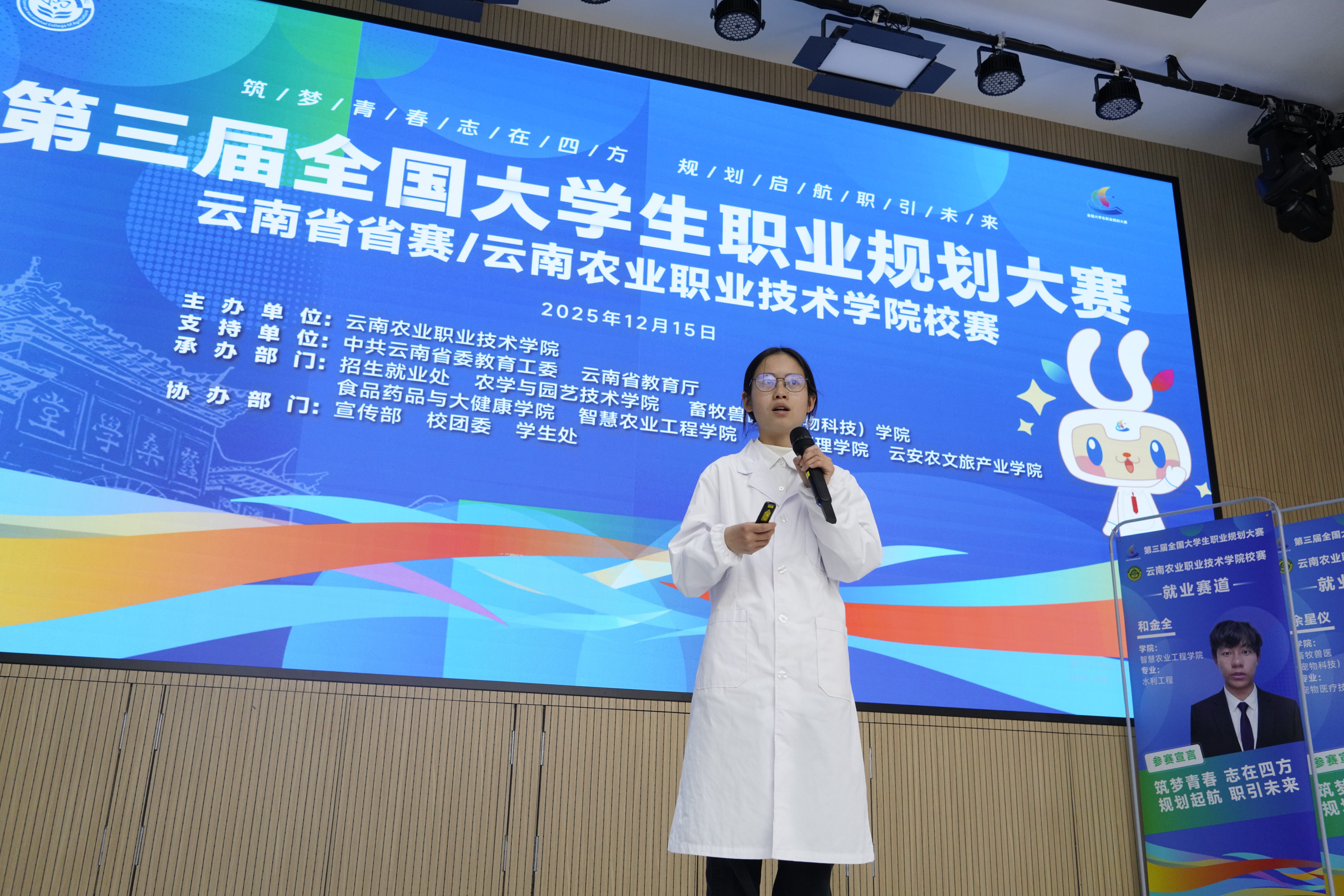 通知中心12月15日,第三届全国大学生职业规划大赛sunbet集团中国官网入口校赛决赛在学校小哨校区综合楼一楼阶梯教室成功举办。本次大赛由学校主办,招生就业处联合农学与园艺技术学院、畜牧兽医学院(宠物科技学院)等7个二级学院共同承办,宣传部、团委、学生处协同举办,以“立足农业特色·规划职业航向”为核心,为全校学子搭建了职业探索与能力展示的优质平台。