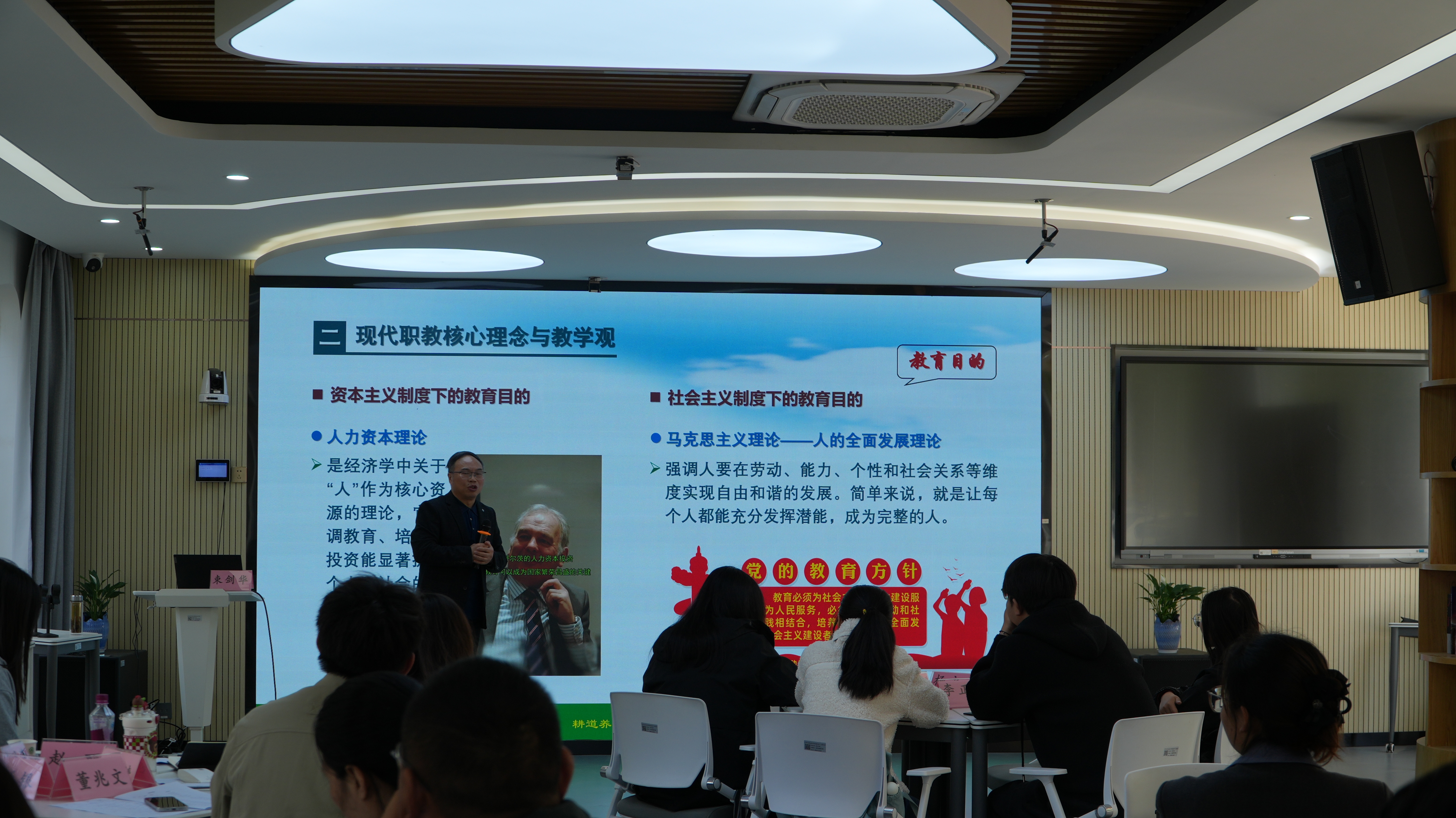 培训首日,束剑华教授以“职业教育的核心理念与岗课赛证融合”为主题,深入解读职业教育“类型教育”定位与综合育人模式的核心要求,为新教师明晰教学方向;葛长荣教授分享科研项目申报技巧及注意事项,破解新教师科研入门难题;宋志伟教授围绕课程组合设计与新形态教材开发展开探讨,助力新教师提升课程建设能力。