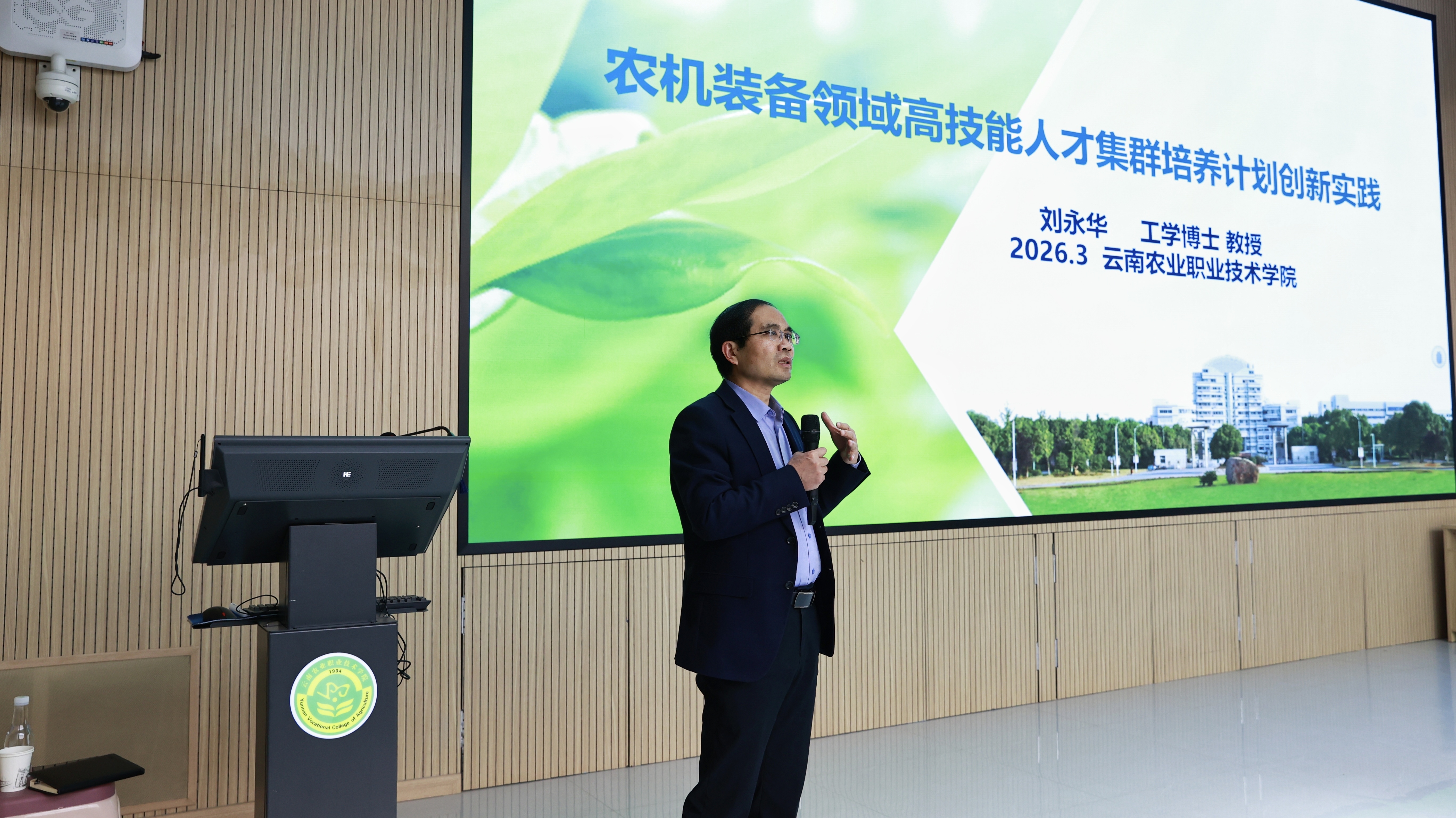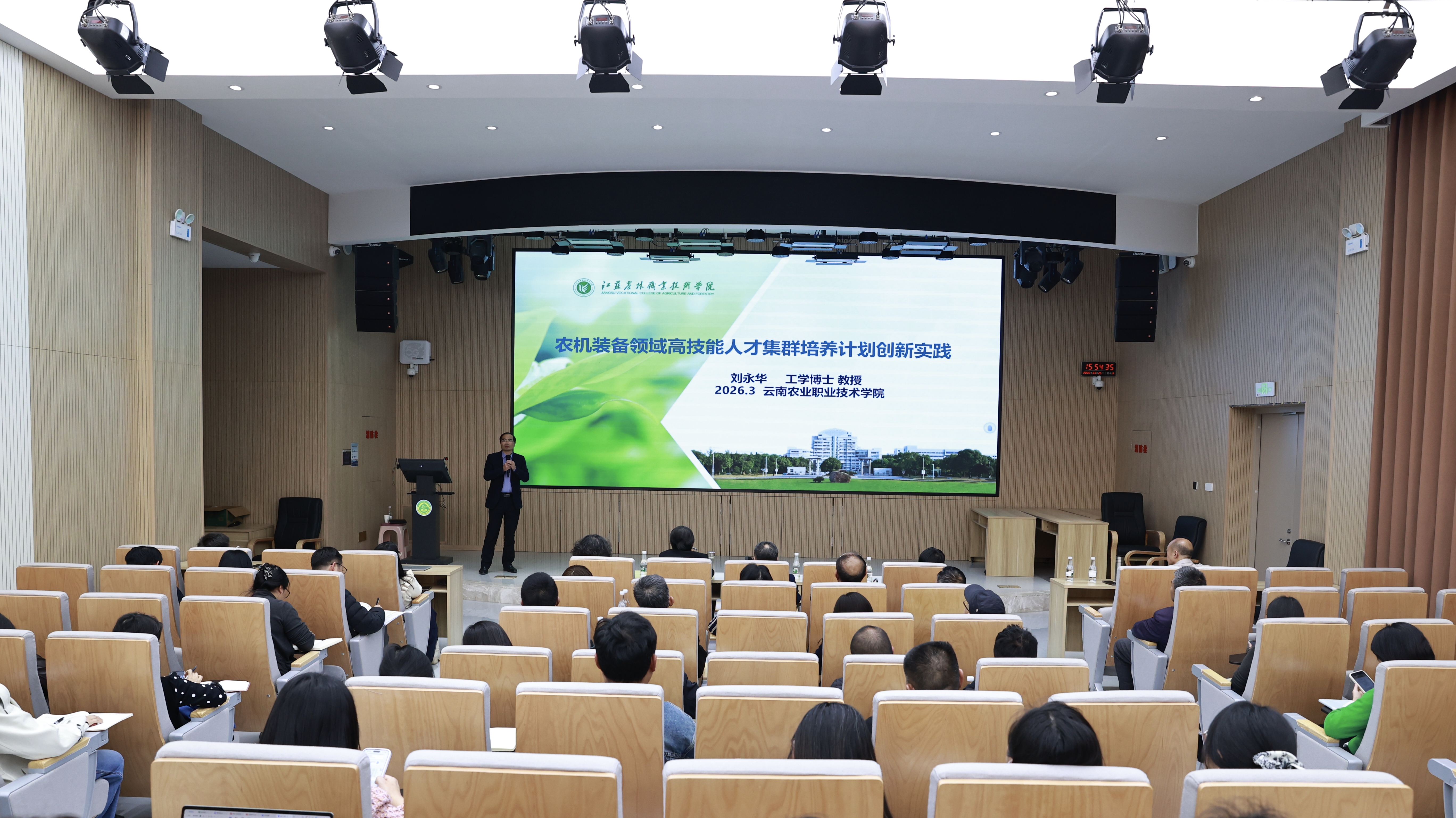 通知中心3月25日下午,江苏农林职业技术学院机电工程学院刘永华教授应邀做客sunbet官网2026年第4期“云农匠心”大讲堂,以“农机装备领域高技能人才集群培养创新实践”为题开展交流辅导。讲座由校长陈太安主持,副校长盛冀萍、银龄特聘教授、二级学院行政负责人,以及专业建设与教学管理等有关人员参加。