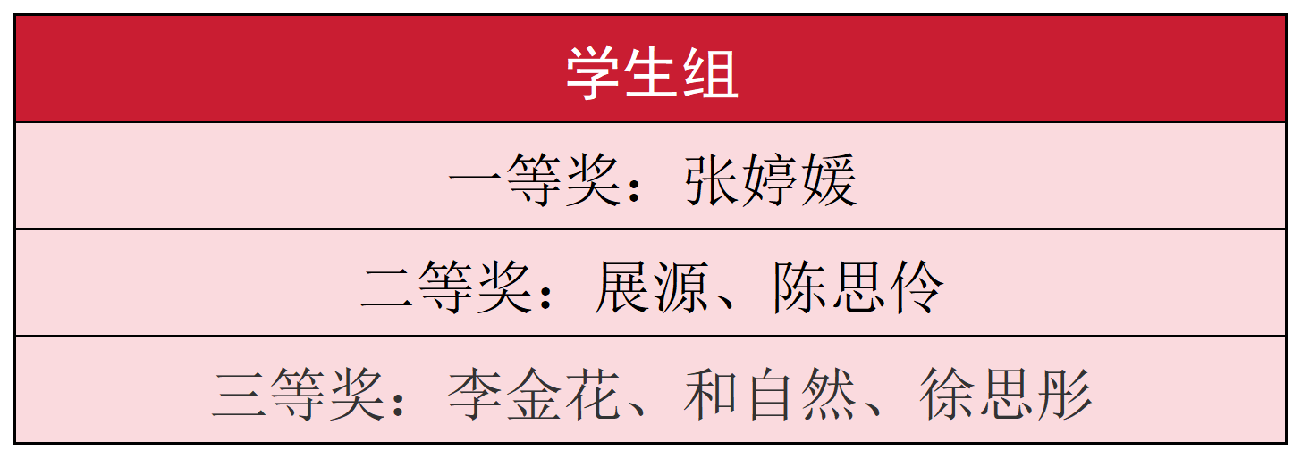 经评委团专业、严谨、公正评审,本次大赛分别评出教师组、学生组各级奖项,一等奖选手将代表学校晋级全省复赛。