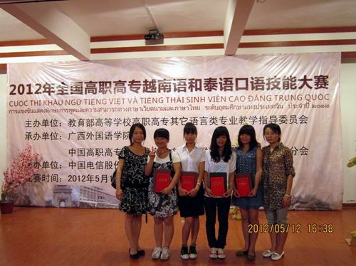 我院基础部在接到本次大赛的通知后,积极组织泰语教研室在全院范围内挑选参赛选手,并对4名备战选手从讲稿撰写、演讲技巧、才艺表演、舞台效果、服装道具等进行了近一个月的精心辅导。经过充分的准备,我院4名选手最终均荣获泰语赛区三等奖的好成绩。这是我院首次参加小语种语言类比赛,通过大赛的历练,进一步增强了学生们学习泰语语言的兴趣和信心,也促进了我院与其它高校之间泰语教学的交流。