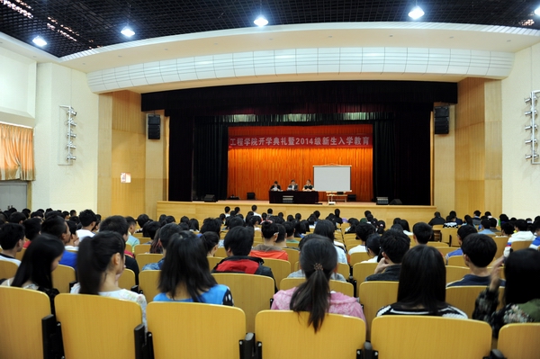 丹桂飘香,秋高气爽。8月23日上午8:30,工程学院开学典礼暨2014级新生入学教育率先在小哨校区大礼堂举行。工程学院全院教职工、新生班主任、2014级新生、部分老生代表出席了典礼。典礼由工程学院党总支书记蔡永生主持。