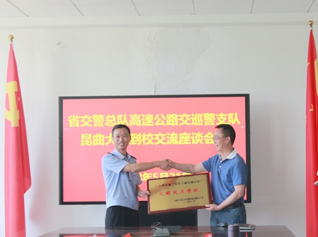 陈跃坤大队长向学校授予“云南省文明交通学校”牌子
