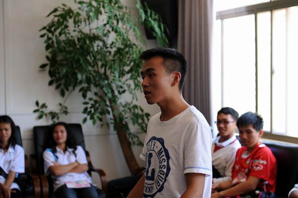 我院赴泰学生杨婧等三位同学代表留学生畅谈了在泰国学习交流的心得体会,一致认为泰国的学校、师生非常友好,无微不至地关心帮助留学生学习泰语和泰国文化。感受到了泰国师生的真诚友谊。