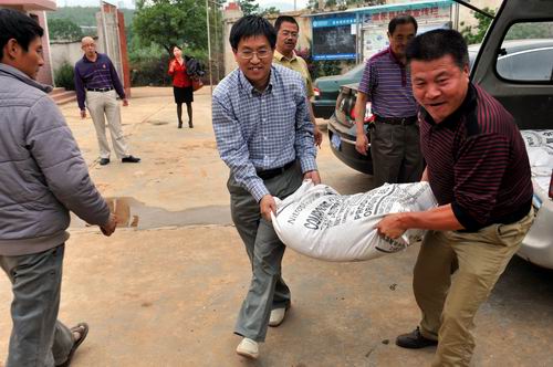中午1:00,崎岖的山路上留下了崔金赋书记一行的身影。崔书记告诉大家:“我们不要惊扰当地政府尽早赶到农户家中,把化肥送到他们手里,去晚了他们可能已经下地耕作了。”本着一切从简,不给基层增加负担的想法,直接去农户家里解决实际问题。