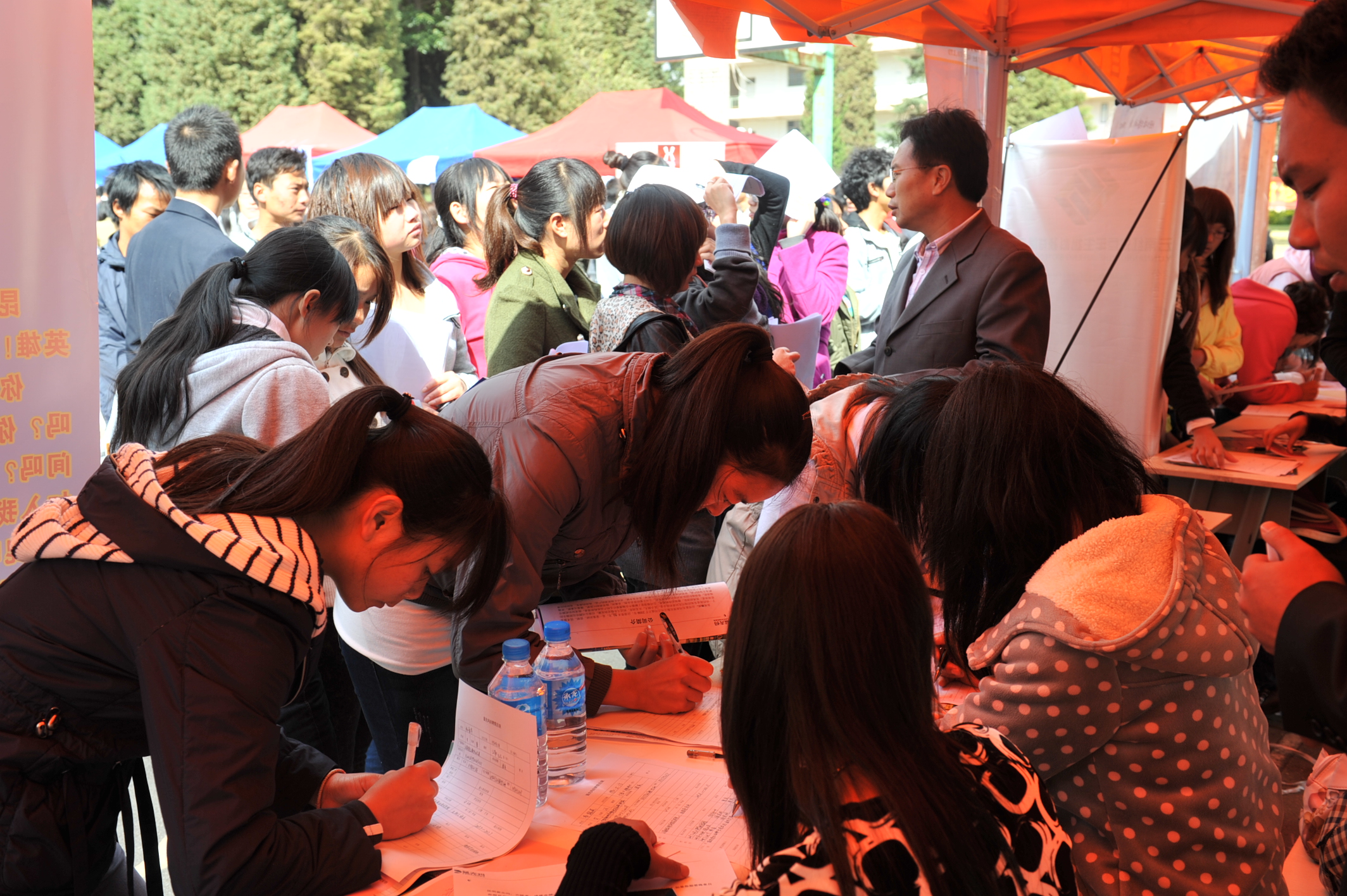 毕业生在现场填写个人求职信息