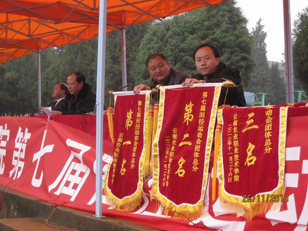 11月24日上午9:00y运动会在小哨校区运动场隆重举行,党委书记崔金赋、院长彭志远、党委副书记赵刚、副院长何明东、赵莉、俞浩等学院党政领导,全体中层干部,运动会组委会裁判员、工作人员,以及学院全体参赛运动员共1200余人出席开幕式。