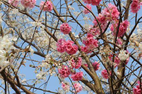 红白相间的樱花