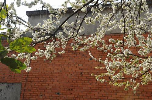 红墙白花相映成趣