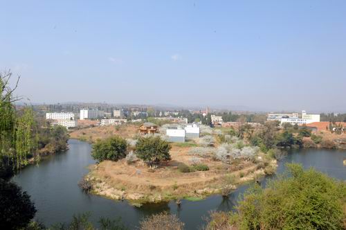 远眺鲜花盛开的校园