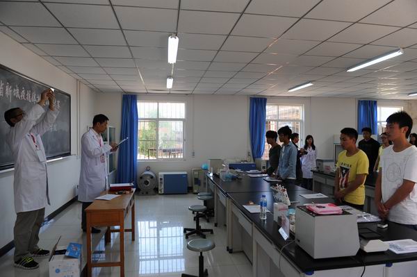 通知中心比赛中所需的器材在赛前已准备就绪,并整齐的放在实验桌上。早上八点左右在学院新行政楼一楼会议室,进行第一次参赛选手签名。参赛选手到达了比赛地点,开始签到、抓阄,于10:00进入实验室。参赛选手排队,穿好实验服,整齐有序地进入实验室。裁判长宣布比赛开始,参赛选手们投入到紧张有序的测定过程中。新城疫的整个测定过程包括配制、鸡红细胞悬液、血凝试验、配制病毒、血凝抑制试验。参赛选手们按照操作规程进行试验器材的检查,用心标识,合理调整摆放位置。他们有条不紊的完成每一个步骤,每一组的两个参赛选手相互配合,认真规范地进行各项操作。在比赛过程中,有的参赛选手由于紧张,出点小问题,但他们临危不乱,争分夺秒,努力挽回。整个比赛持续了3小时,比赛接近尾声,各组参赛选手认真的填写了抗体滴定报告单,为自己的参赛交上了一份满意的答卷。